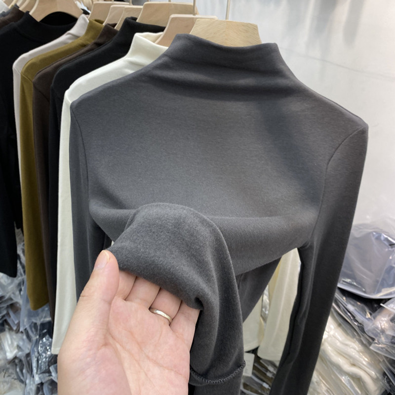 📚 150小个子德绒半高领打底衫女秋冬季内搭紧身T恤磨毛加绒长袖上衣