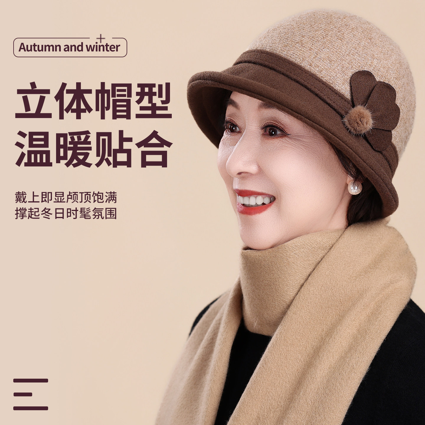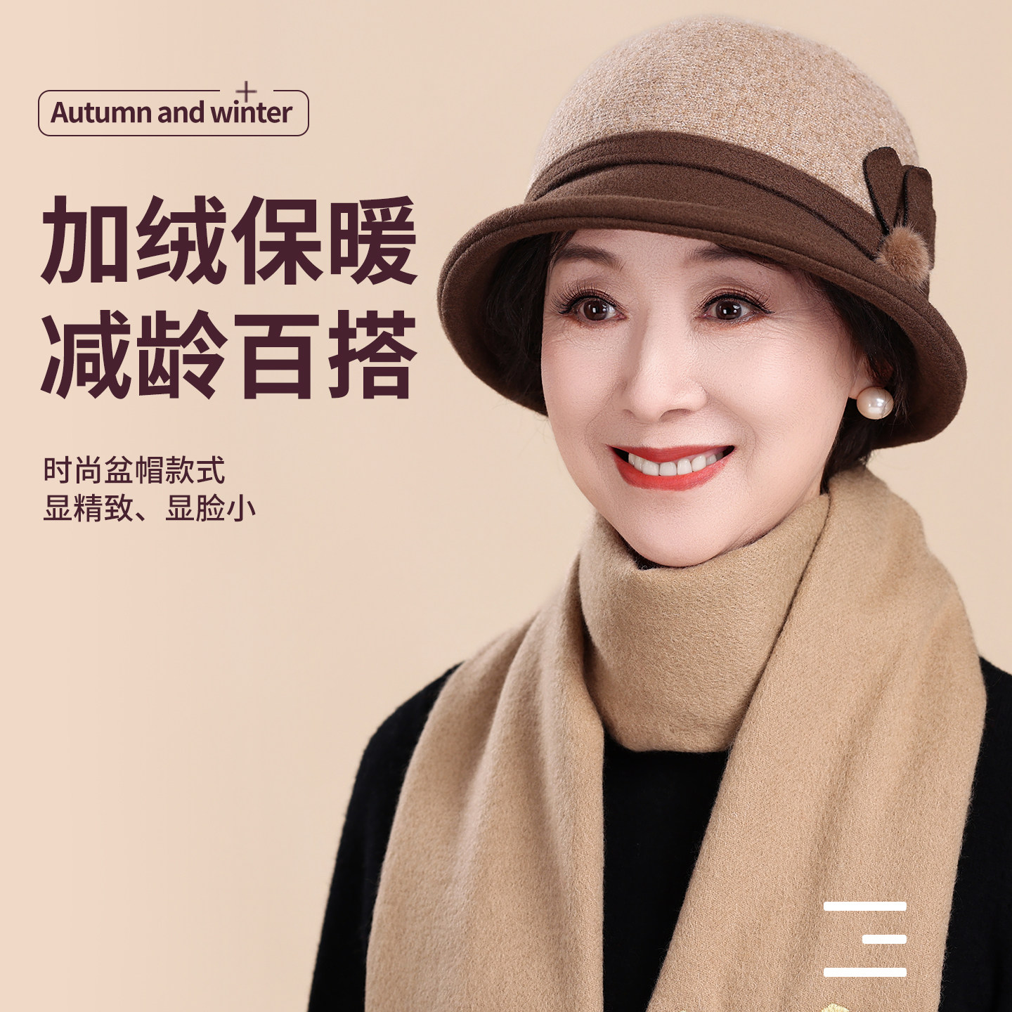 📚 中老年人帽子女款秋冬季妈妈奶奶老人羊毛盆帽洋气加绒冬天保暖帽