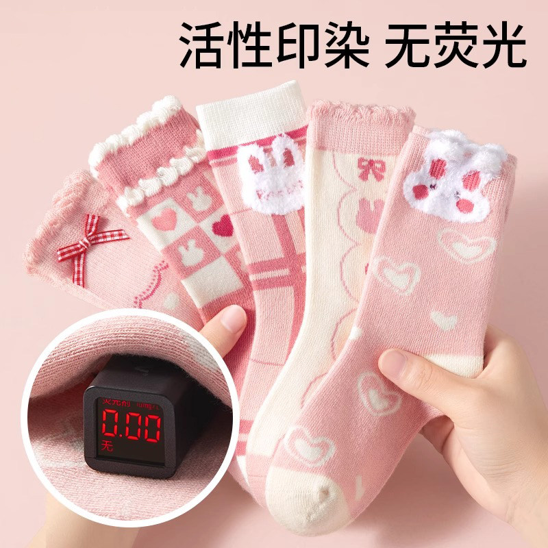 📚 儿童袜子女童春秋季女宝宝中筒无骨纯棉袜女孩秋款全棉高筒大童袜