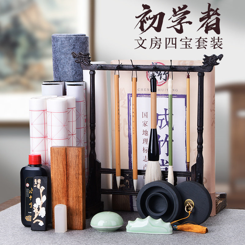 📚 毛笔书法专用初学者套装文房四宝小学生三年级摆件笔墨纸砚全套墨汁砚台三件套毛笔架挂成人收纳架毛笔架道具
