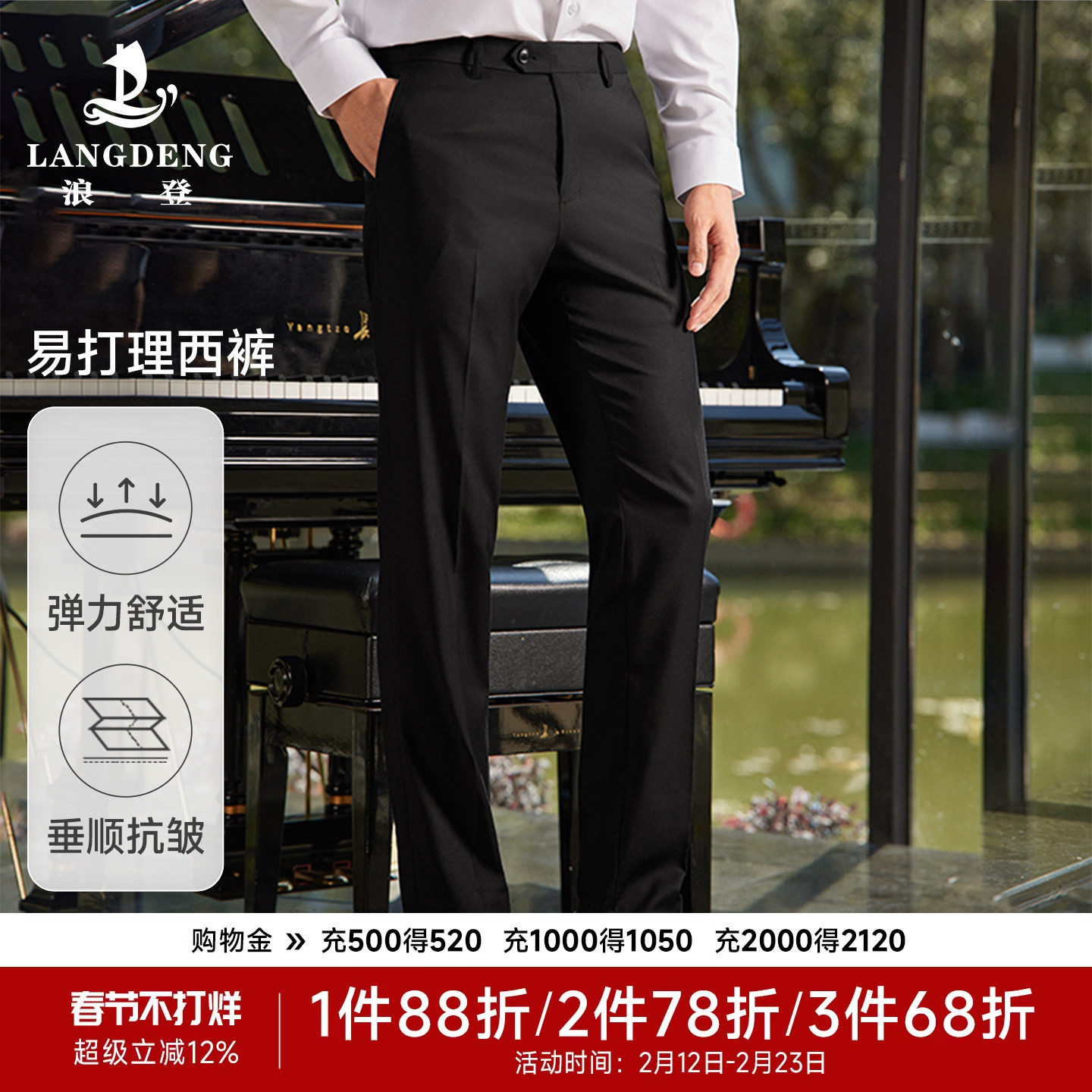 📚 抗皱免烫男士直筒西裤浪登夏季新款透气商务正装易打理商旅西装裤
