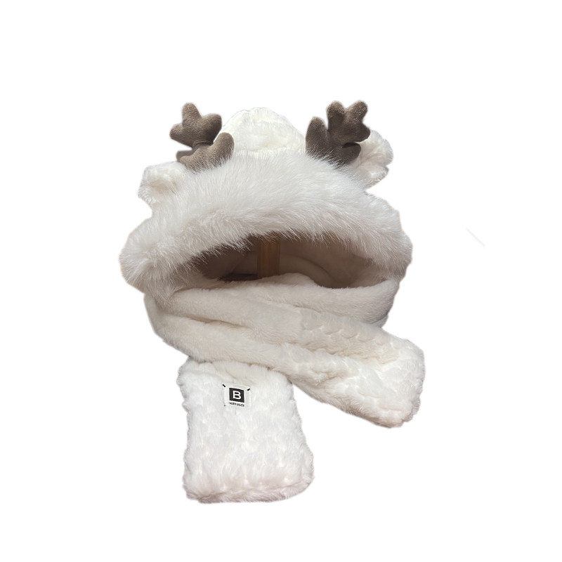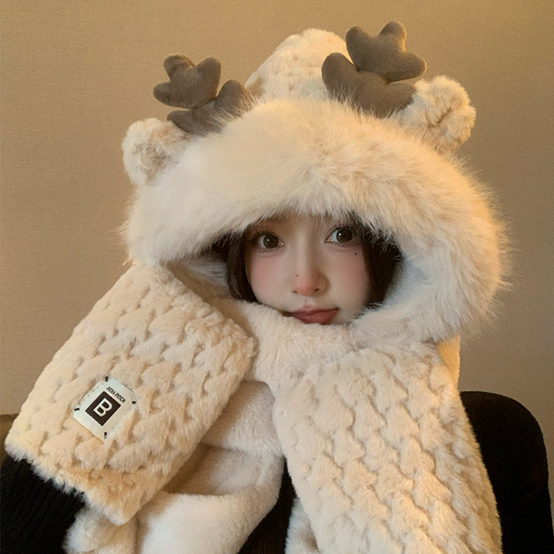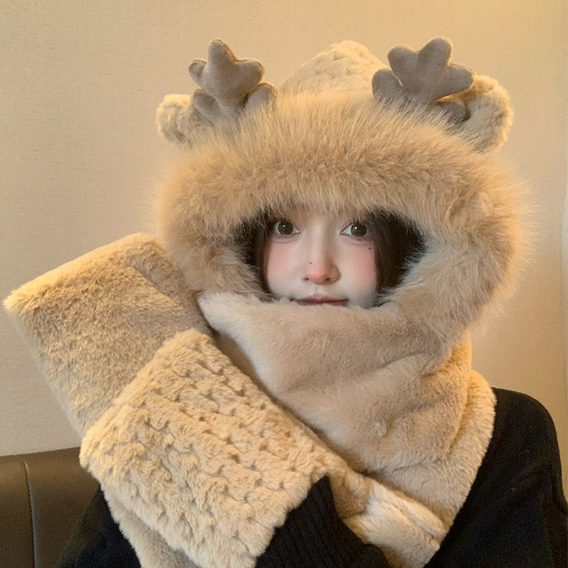 📢快来试试这款圣诞鹿角帽子女款秋冬季可爱毛绒围巾手套一体连帽保暖围脖三件套吧!相信你一定会被它的可爱和温暖所吸引的!🎈