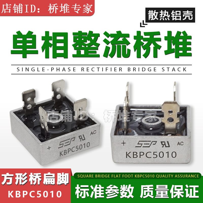 📚 全新SEP现货KBPC5010整流桥堆方形桥扁脚50A1000V单相4脚散热铝壳