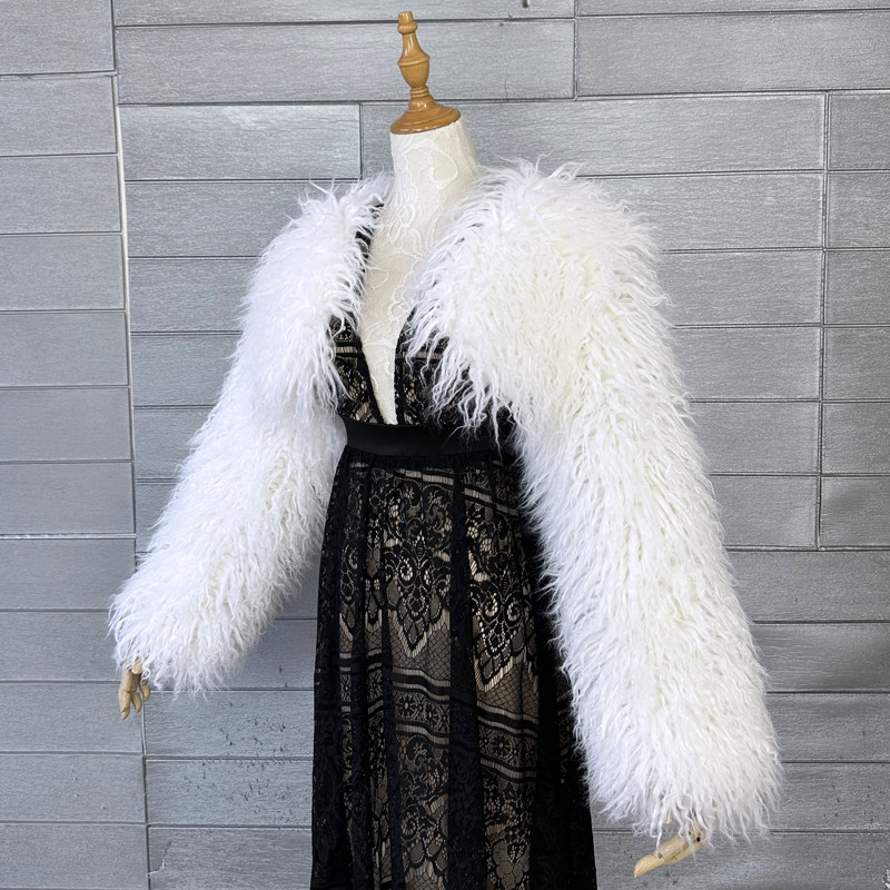 📚 秋冬女士白色滩羊小外套毛毛绒皮草超短外套【婚纱礼服搭配】