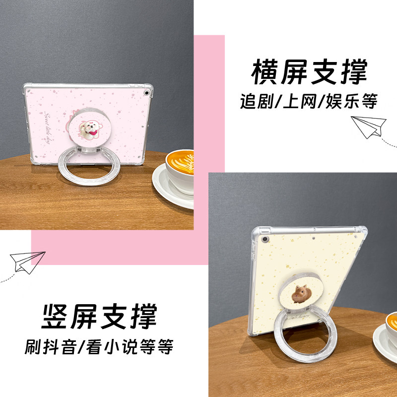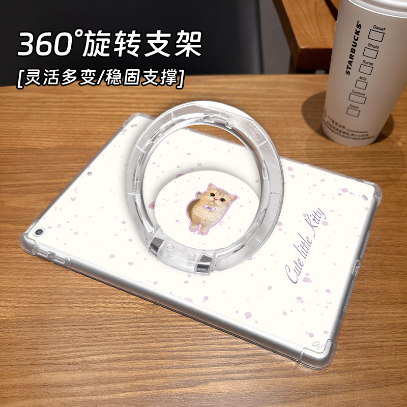 📚 适用于ipadair5保护套端坐猫咪2022新款苹果air5/4/3带支架pro11旋转10亚克力平板mini6/5高透单面第9代10.2