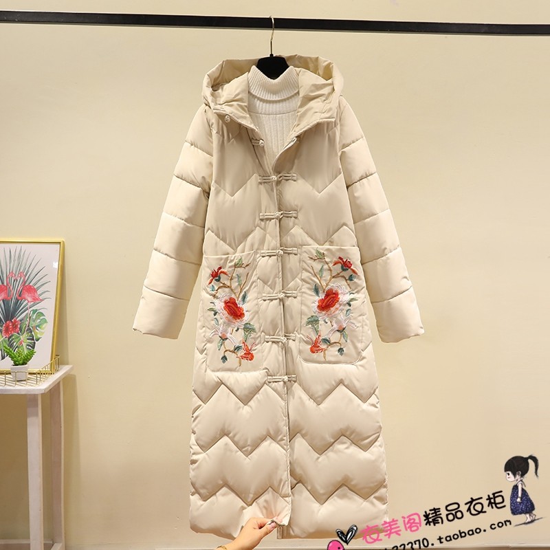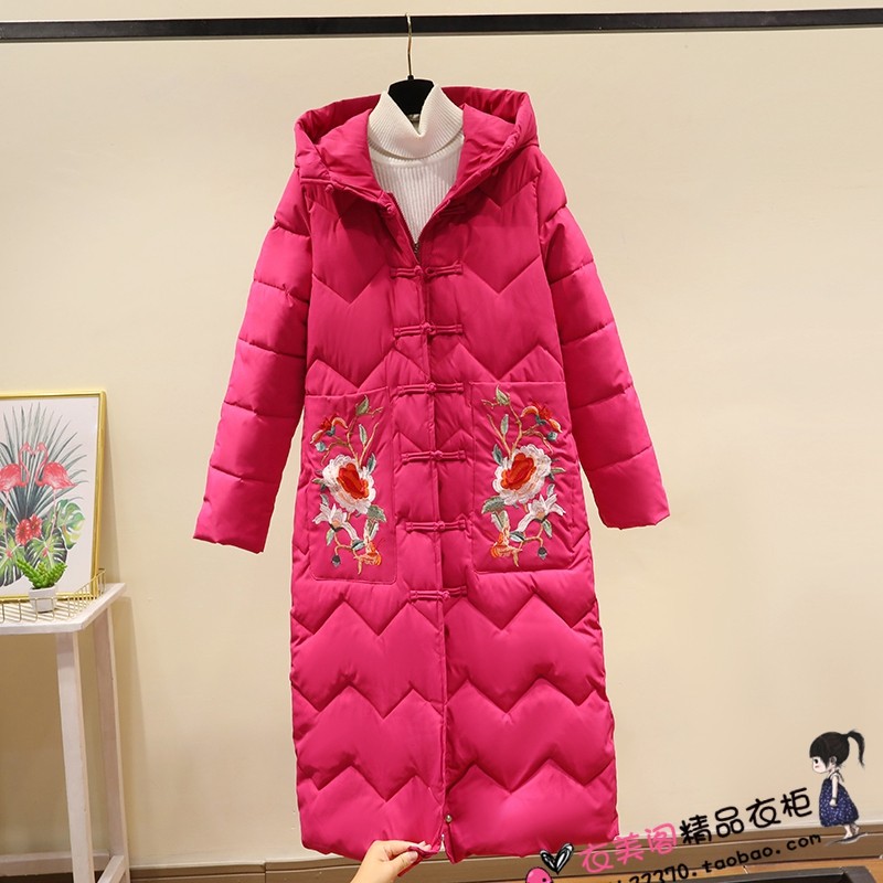 📚 复古民族风红色刺绣棉袄大码加厚羽绒棉衣女中长款过膝棉服冬外套