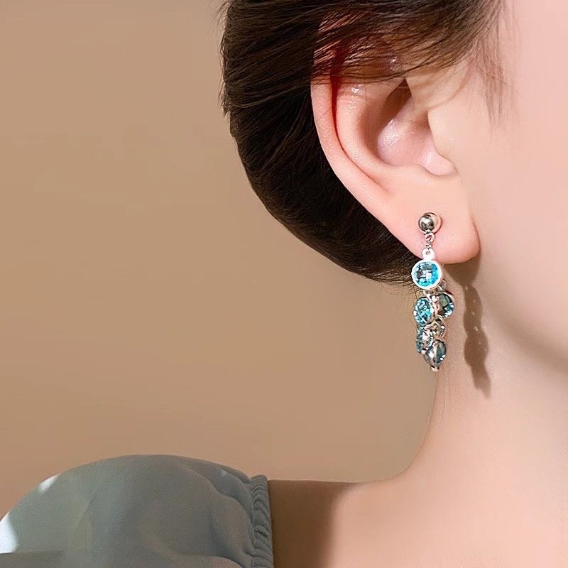 📚 新款水晶吊坠耳钉女独特小众气质耳环轻奢高级感时尚百搭耳饰品女
