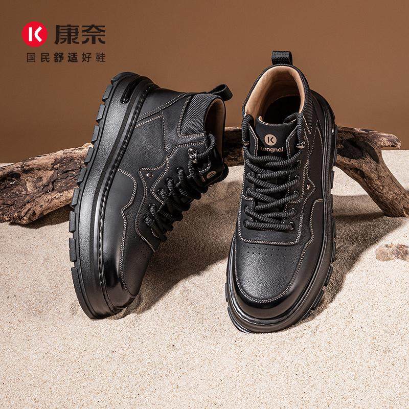 📚 康奈男鞋冬季潮流保暖舒适马丁靴圆头系带男士工装靴男鞋