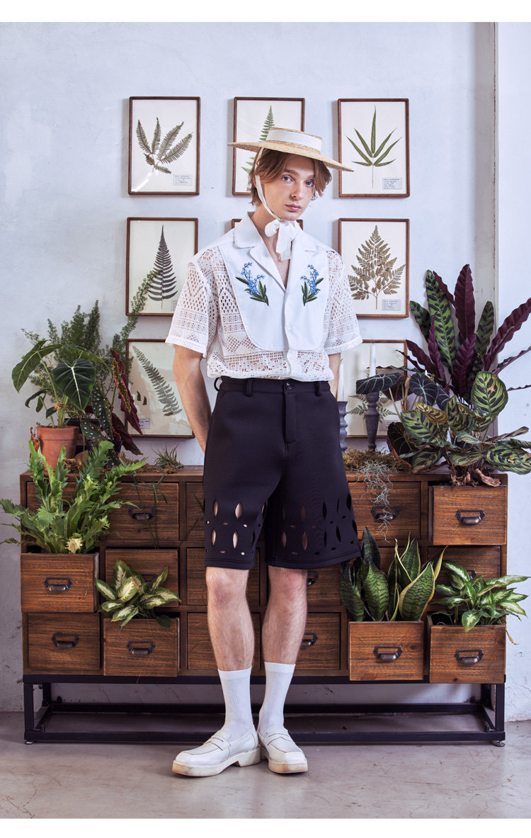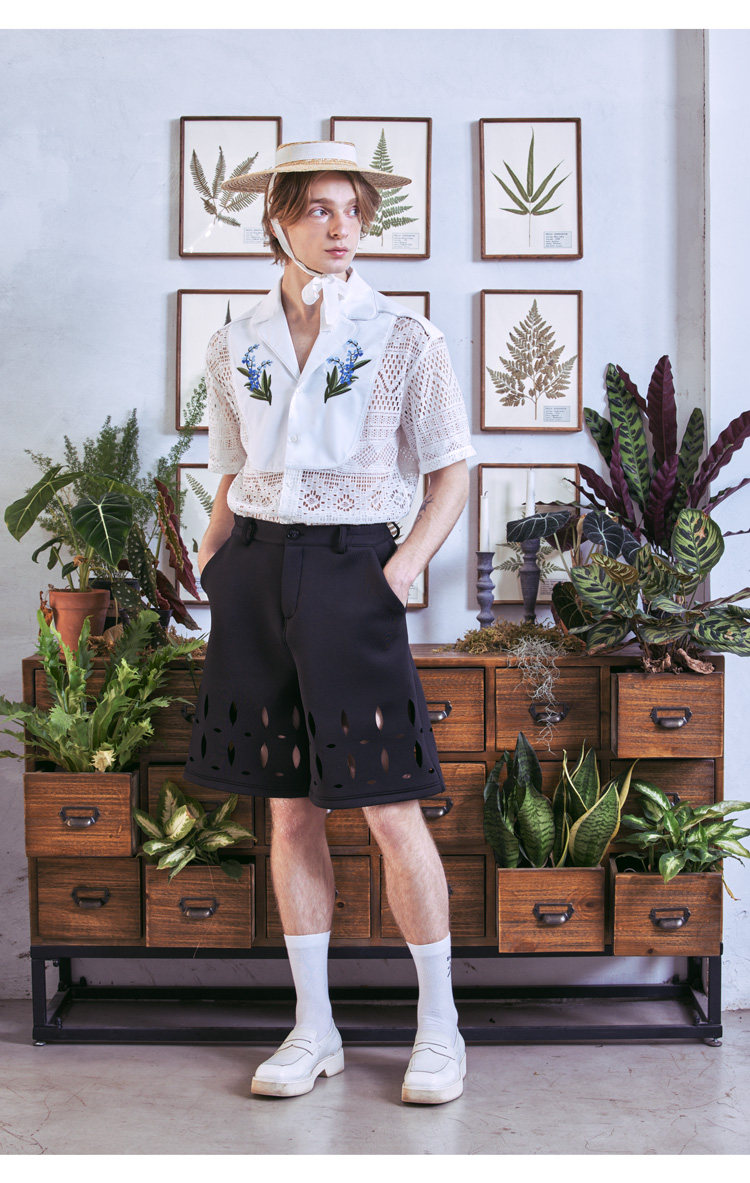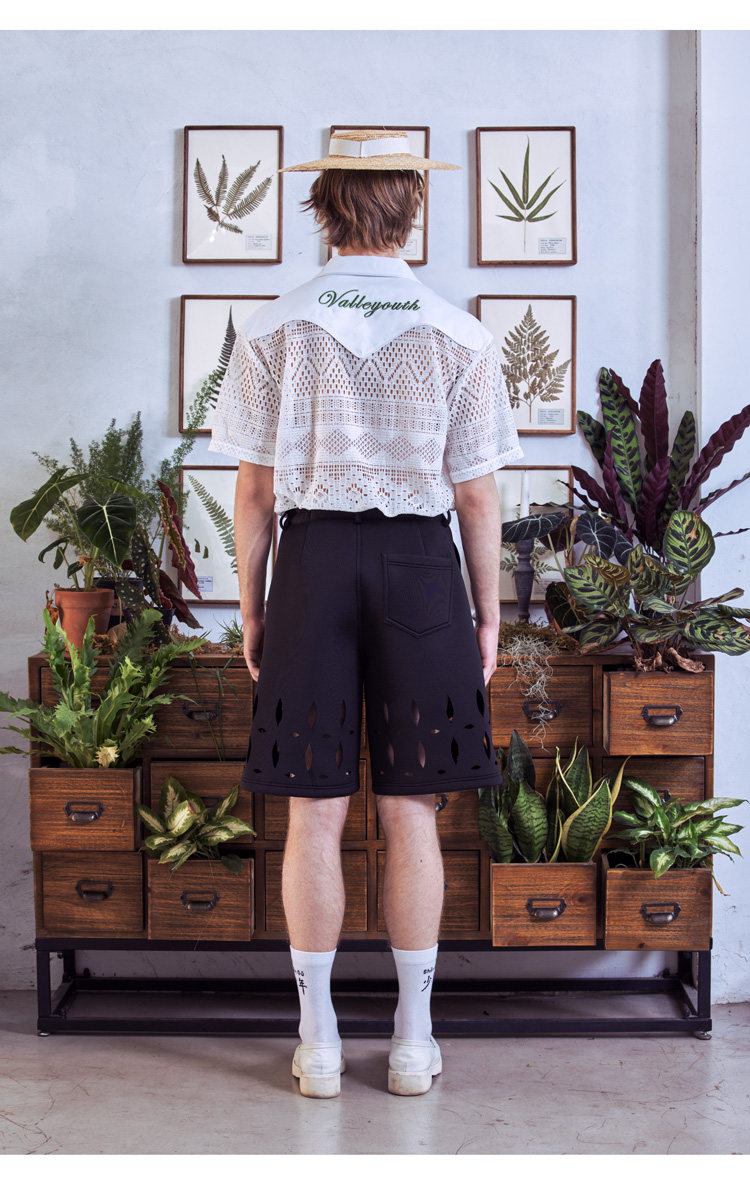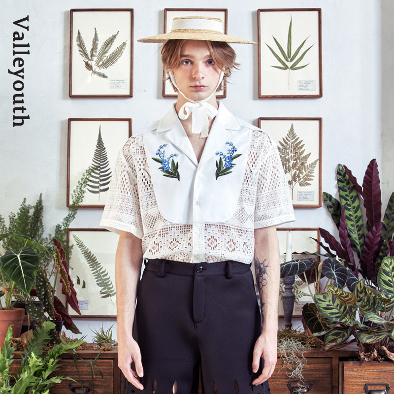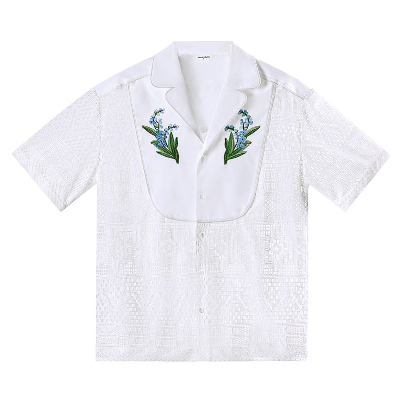 📚 山铃 轻法式复古蕾丝铃兰刺绣古巴领度假风镂空衬衫 山谷少年男装