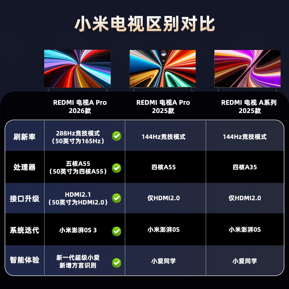 📚 【2026款】小米REDMI A Pro电视55/65/75英寸4K超清护眼智能电视
