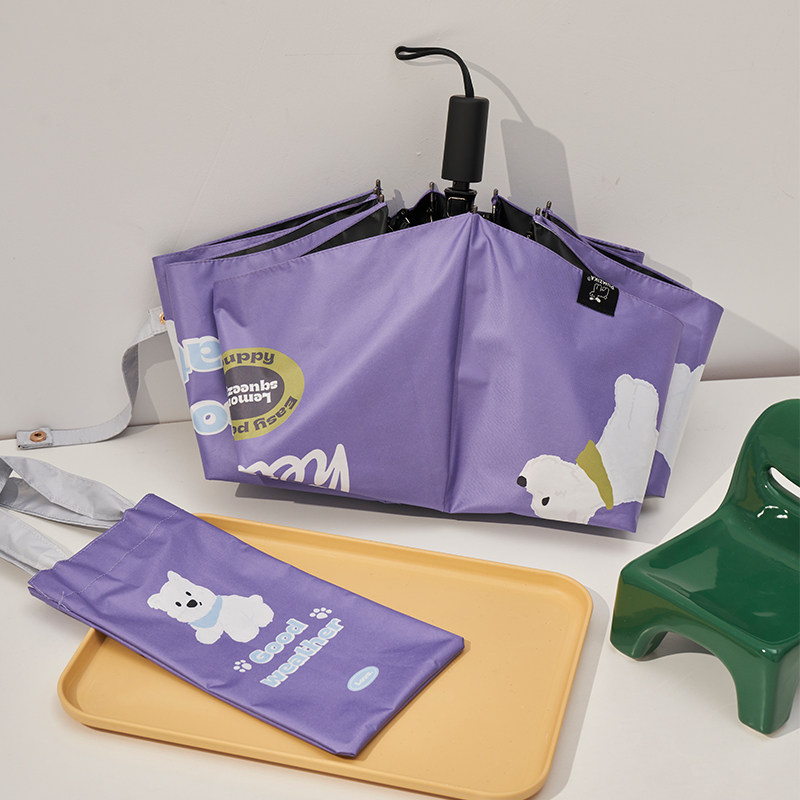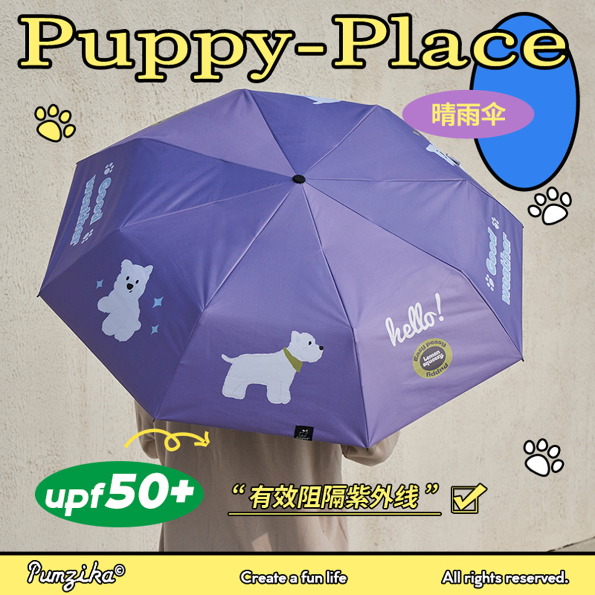 📚 Pumzika原创西高地卡通黑胶晴雨自动伞防晒狗紫色少女手动遮阳伞