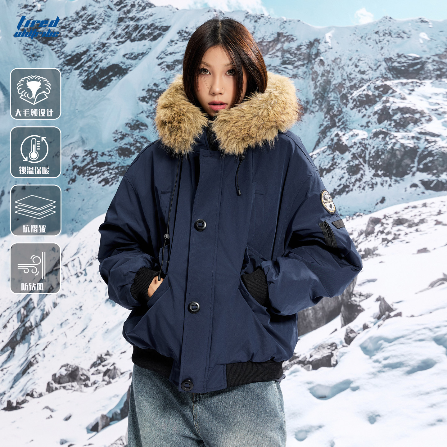 📚 TIRED三防派克服毛领棉衣冬季情侣廓形潮牌防寒保暖工装棉服外套