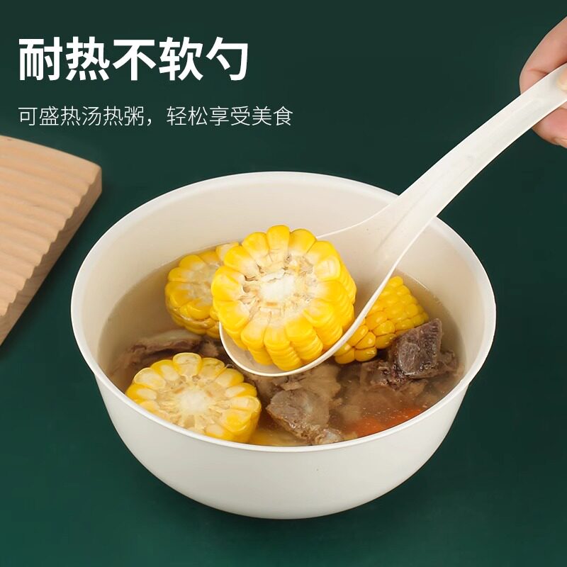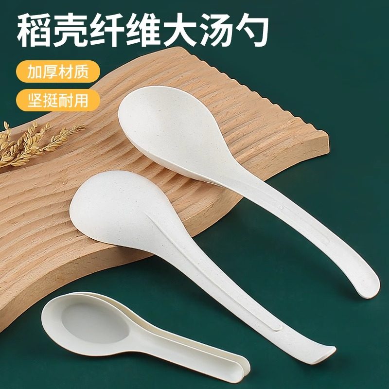 📚 稻壳勺子一次性加厚家用喝汤大公勺高档分菜勺大号长柄食品级酒席