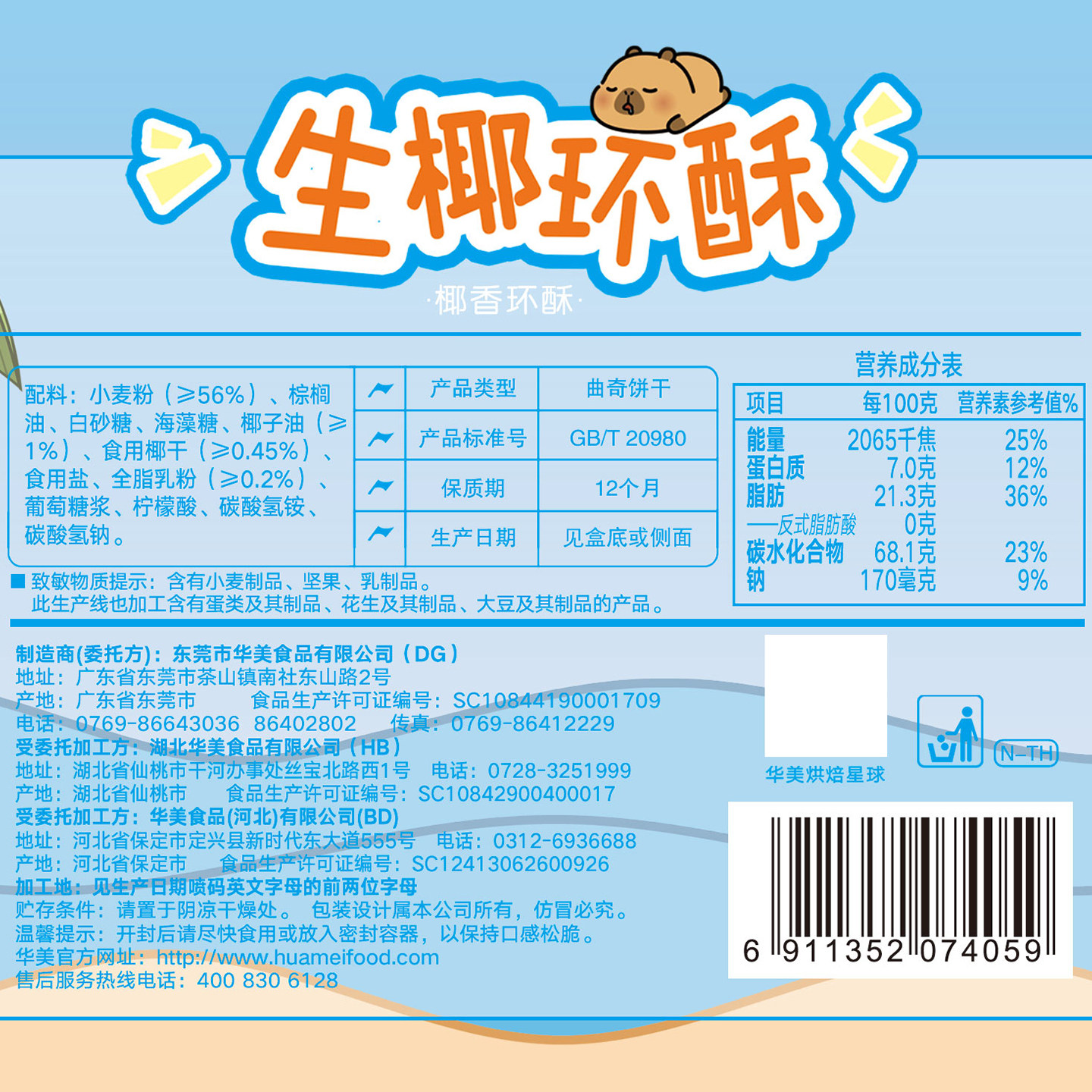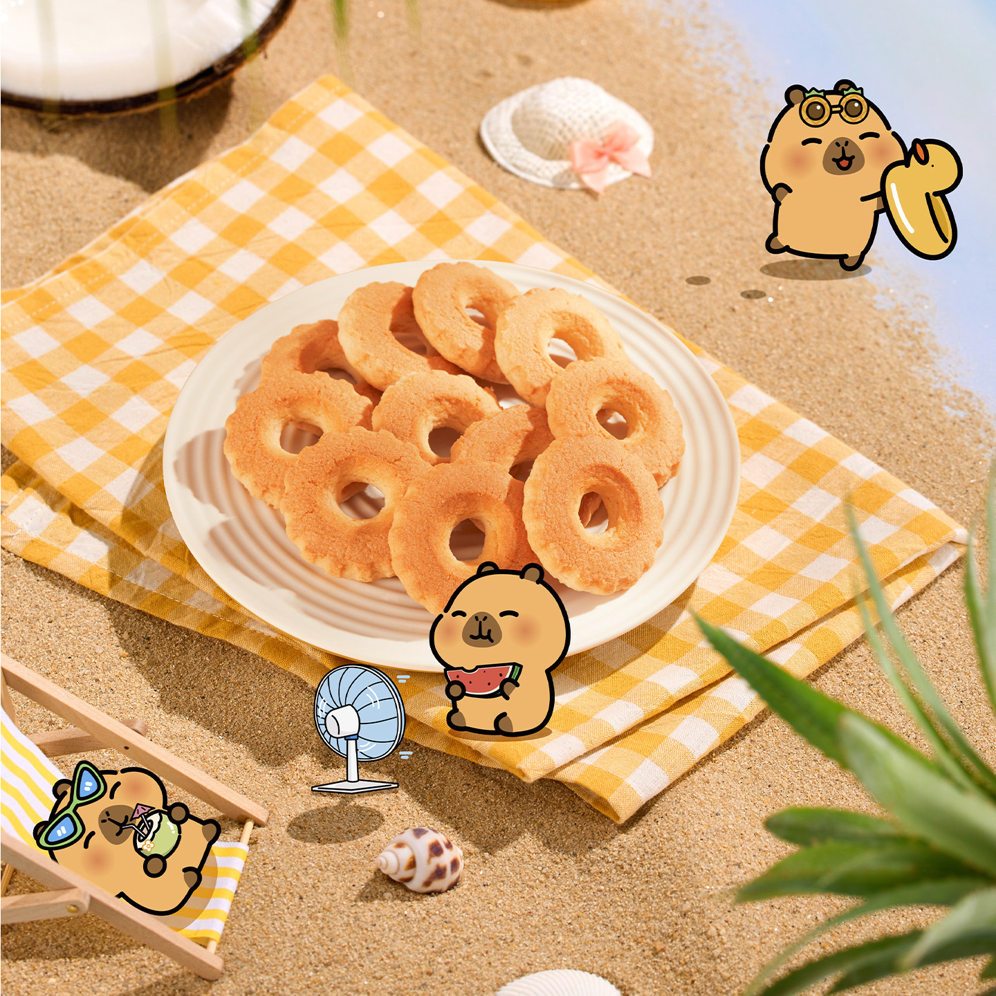 📚 华美卡皮巴拉小黄豚联名款生椰环酥曲奇饼干整箱年货团购1000g