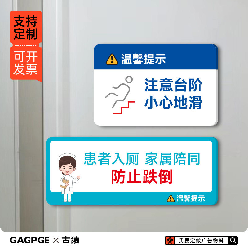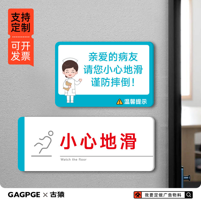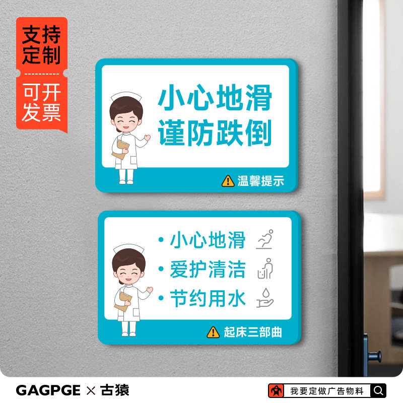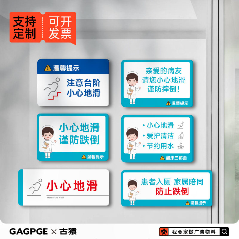 📚 小心地滑谨防跌倒亚克力温馨提示医院卫生间防滑防跌倒标识牌贴纸