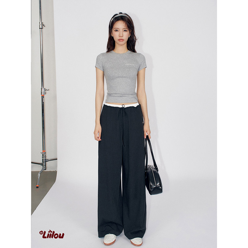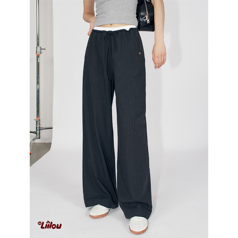 📚 Liilou 松弛感 荷叶边拼接 高腰垂感休闲阔腿西装长裤春夏