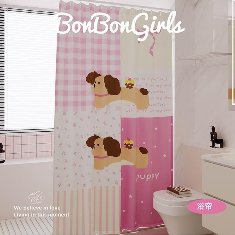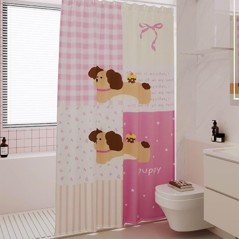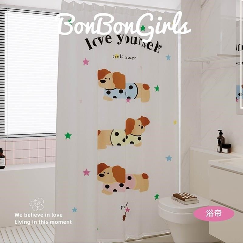 📚 奶油风腊肠狗浴帘防水装免打孔洗澡浴室隔断帘布