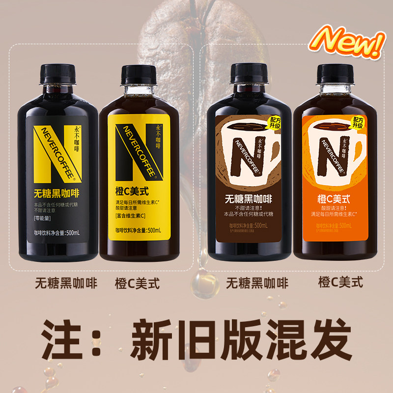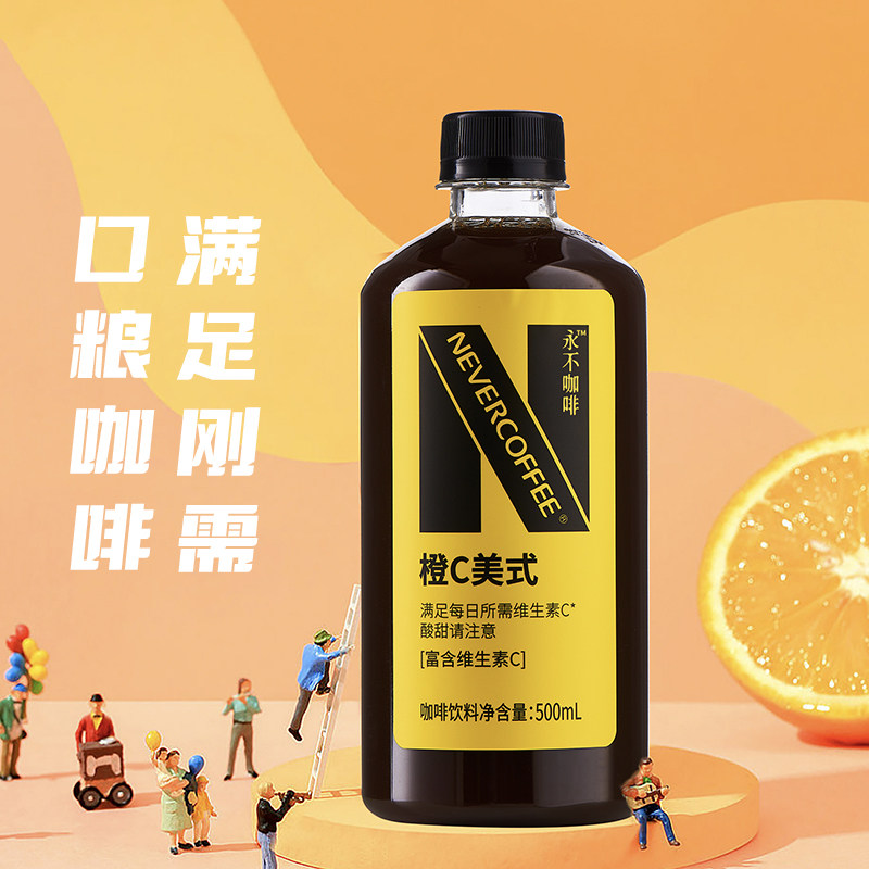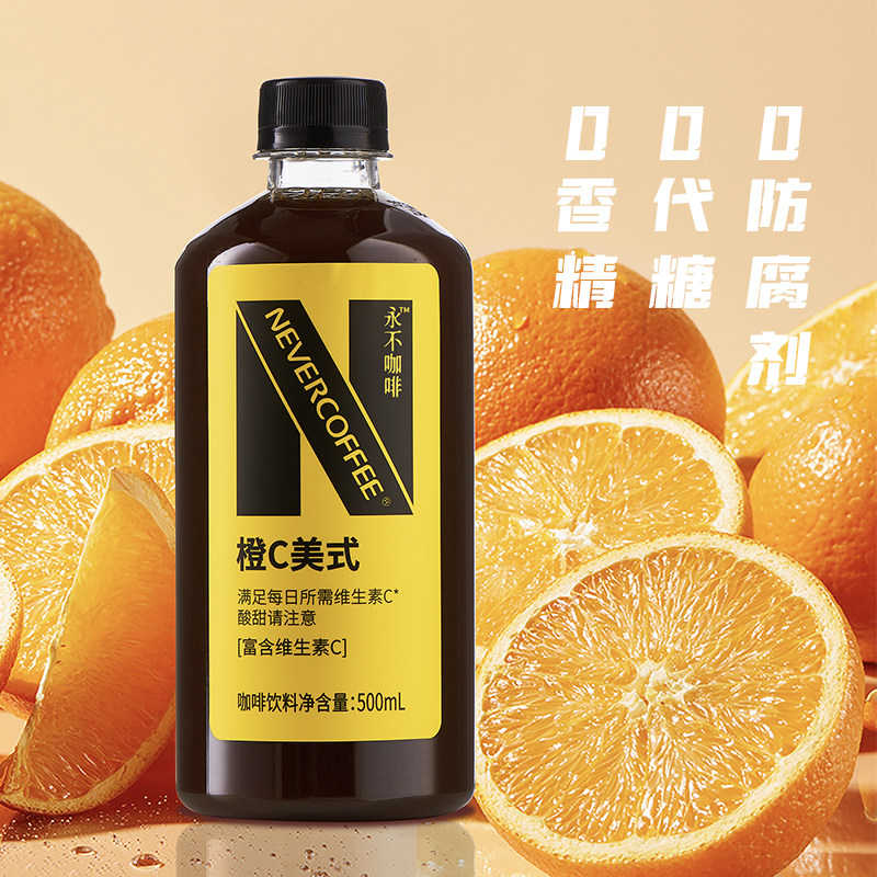 📚 NeverCoffee无糖黑咖啡橙C美式500ml烘焙咖啡0脂即饮咖啡大瓶装