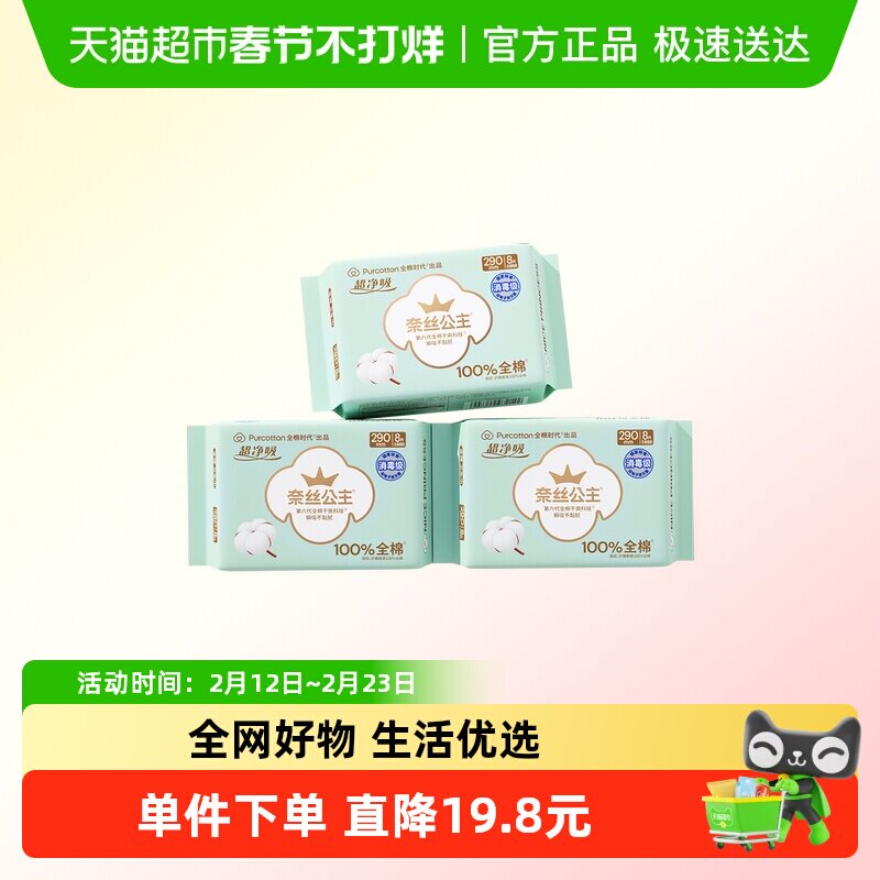 📚 全棉时代奈丝公主消毒级卫生巾日夜两用姨妈巾290mm