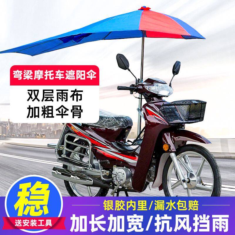 📚 弯梁摩托车雨伞遮阳伞加长加厚遮雨防晒遮阳挡支架双层助力车雨棚