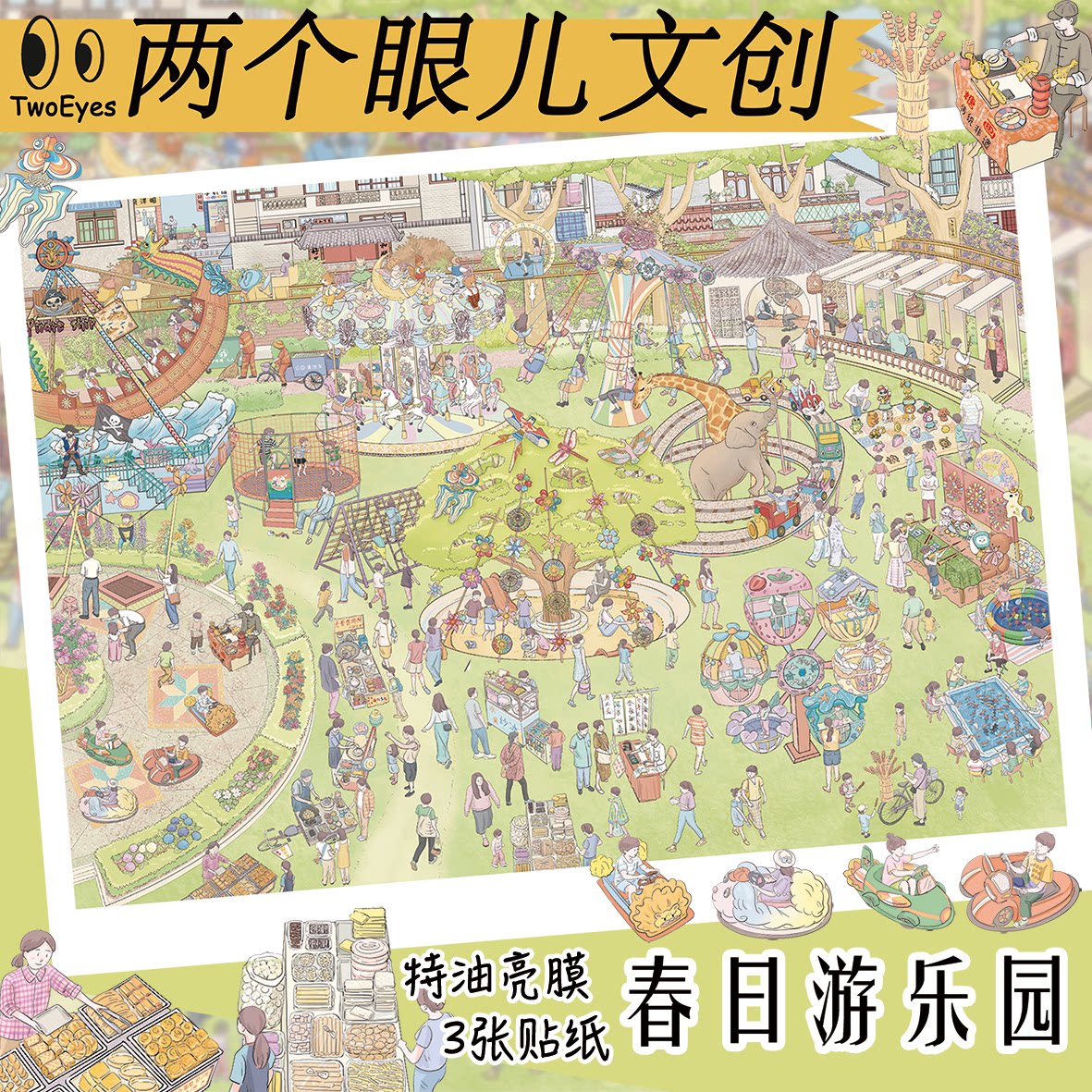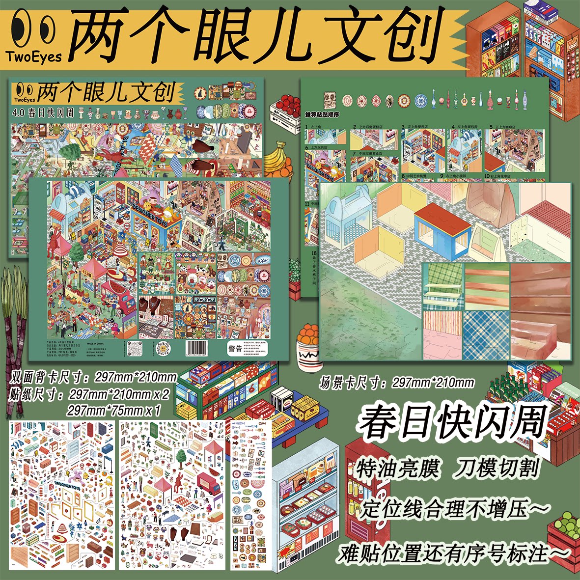 📚 春日快闪周造景贴纸特油两个眼儿文创4.0系列春日游乐园微缩场景3d立体小屋贴画diy解压玩具女孩打发时间礼物
