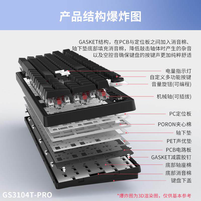 📚 GANSS高斯GS3104TPRO机械键盘无线蓝牙三模游戏电竞办公