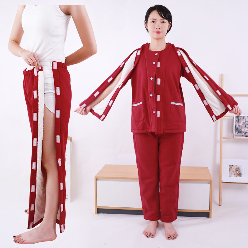 📚 易穿脱病号服加绒加厚保暖护理服手臂骨折腿脚受伤术后方便穿脱裤