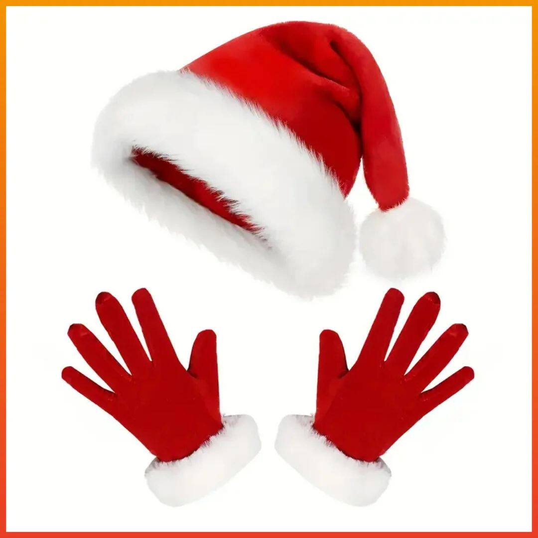 📚 Santa Claus Gloves White Fur Fancy Dress Party Short Red San
