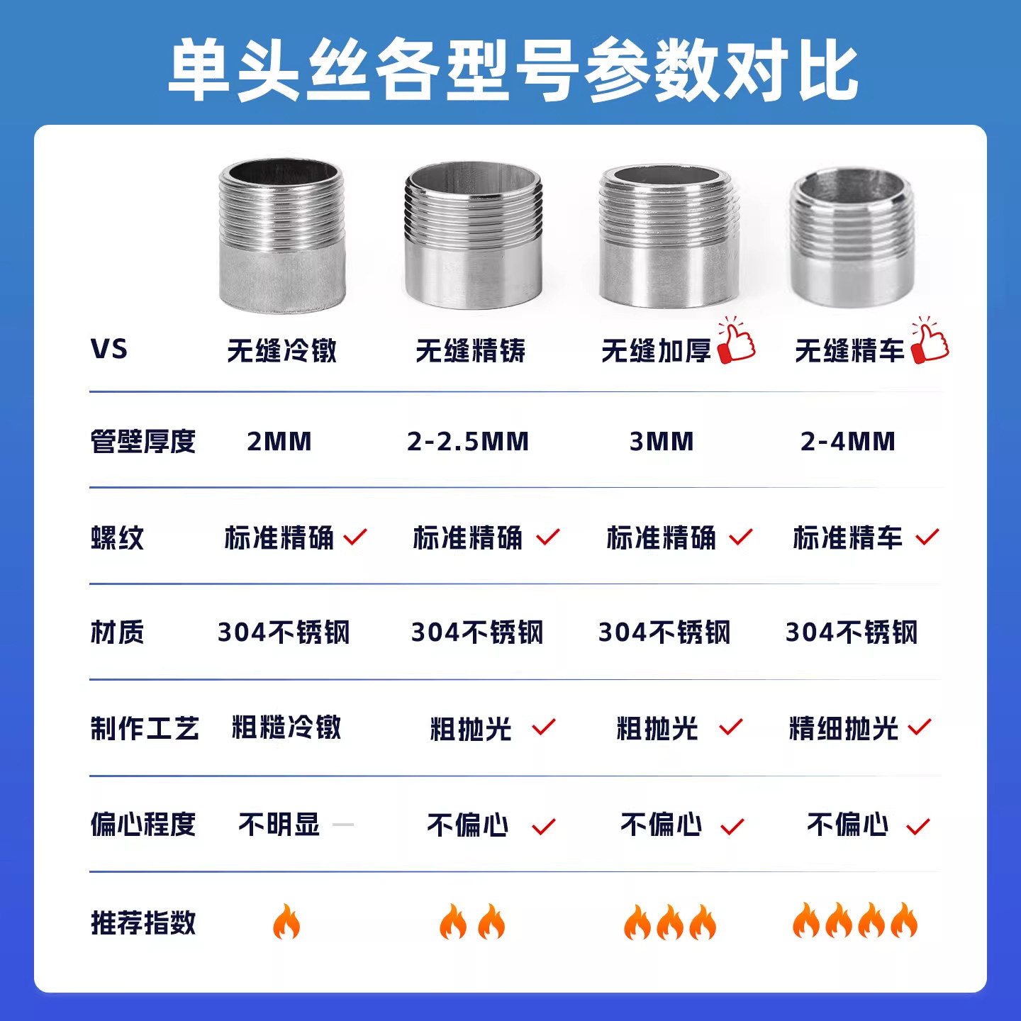 📚 304不锈钢单头丝加厚/加长60/80/100/120mm外丝接头焊接4分6分1寸