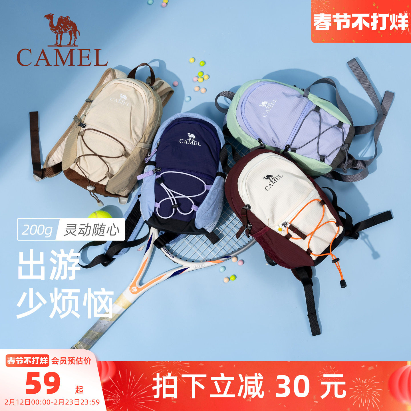 📚 骆驼通勤旅行双肩包女旅游轻便背包迷你小书包轻量化徒步登山包