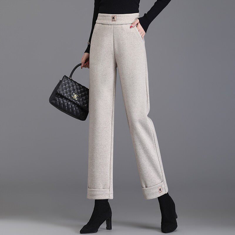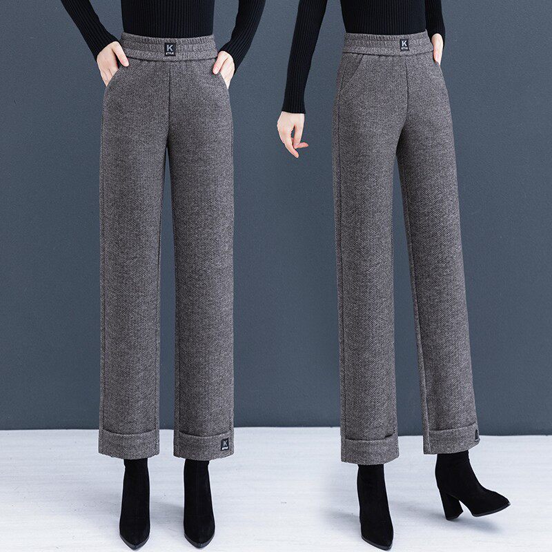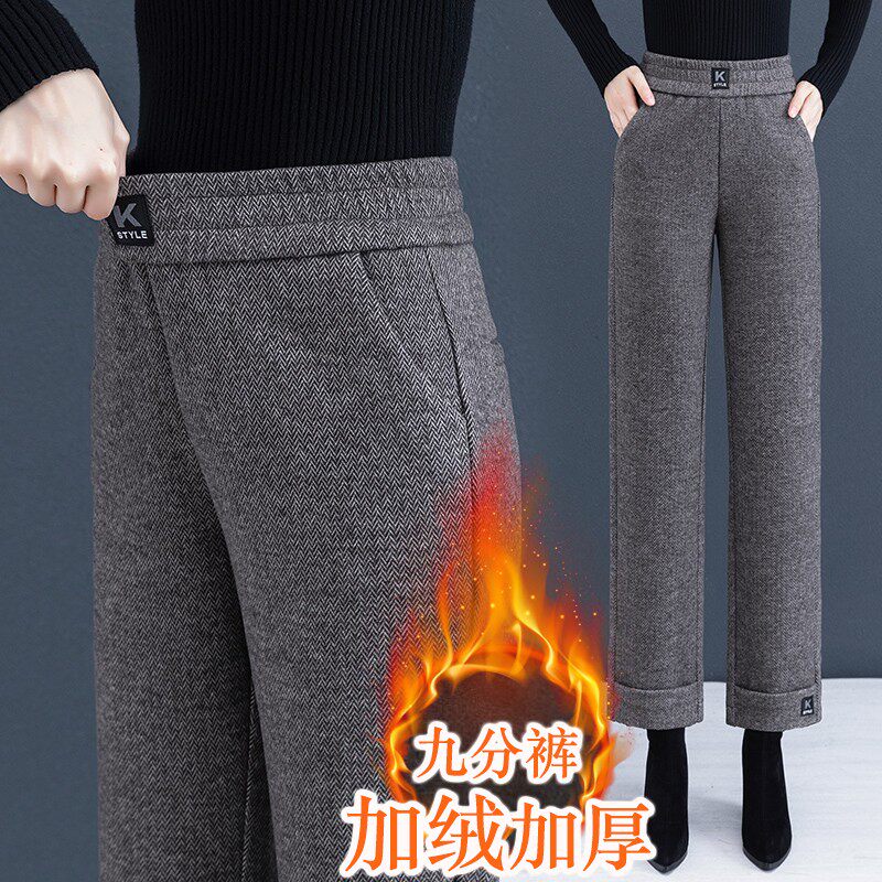 📚 羊毛呢直筒裤加绒加厚九分裤女秋冬宽松小个子妈妈裤高腰中年女裤