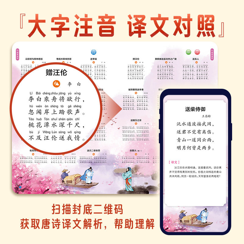 📚 一点就会读的唐诗三百首3-6-8-10岁小学生全拼音标注的唐诗三百首简单易懂注重韵律图文并茂更适合孩子记忆背诵和朗读的超级地板书