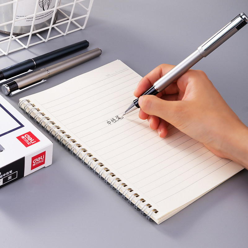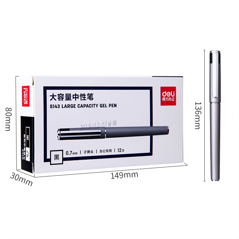 📚 【12支装】得力S143大容量中性笔耐用持久办公笔0.7mm商务型水笔签字笔签名笔水性笔碳素笔子弹头黑水笔包邮