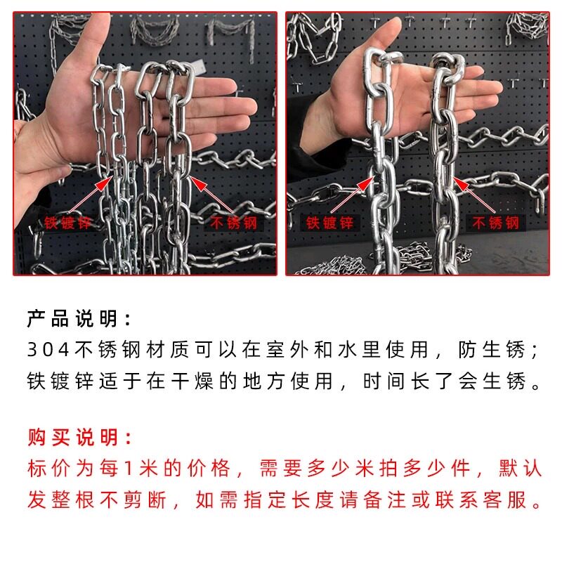 📚 304不锈钢链条无缝铁链条长环短环晾衣链铁锁链挂钩起重链铁链子
