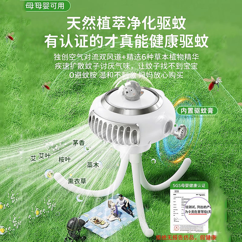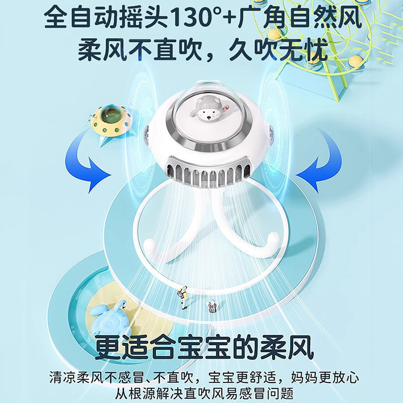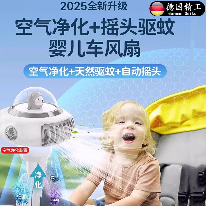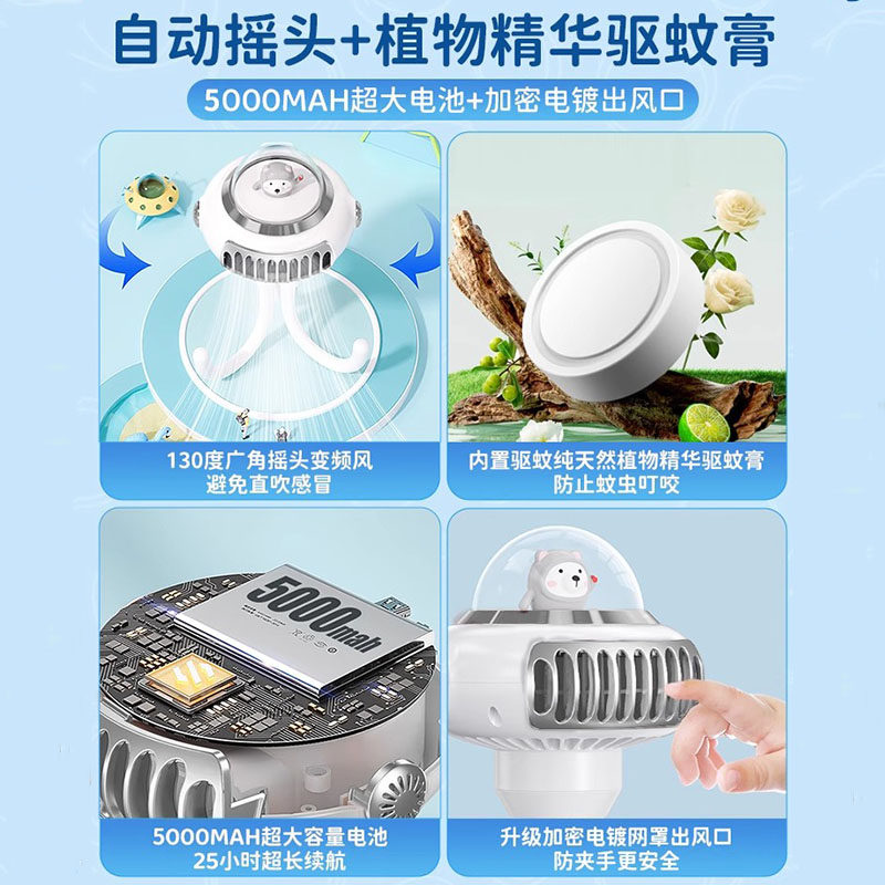 📚 德国精品驱蚊婴儿车风扇宝宝外出专用无叶八爪鱼可摇头静音电风扇