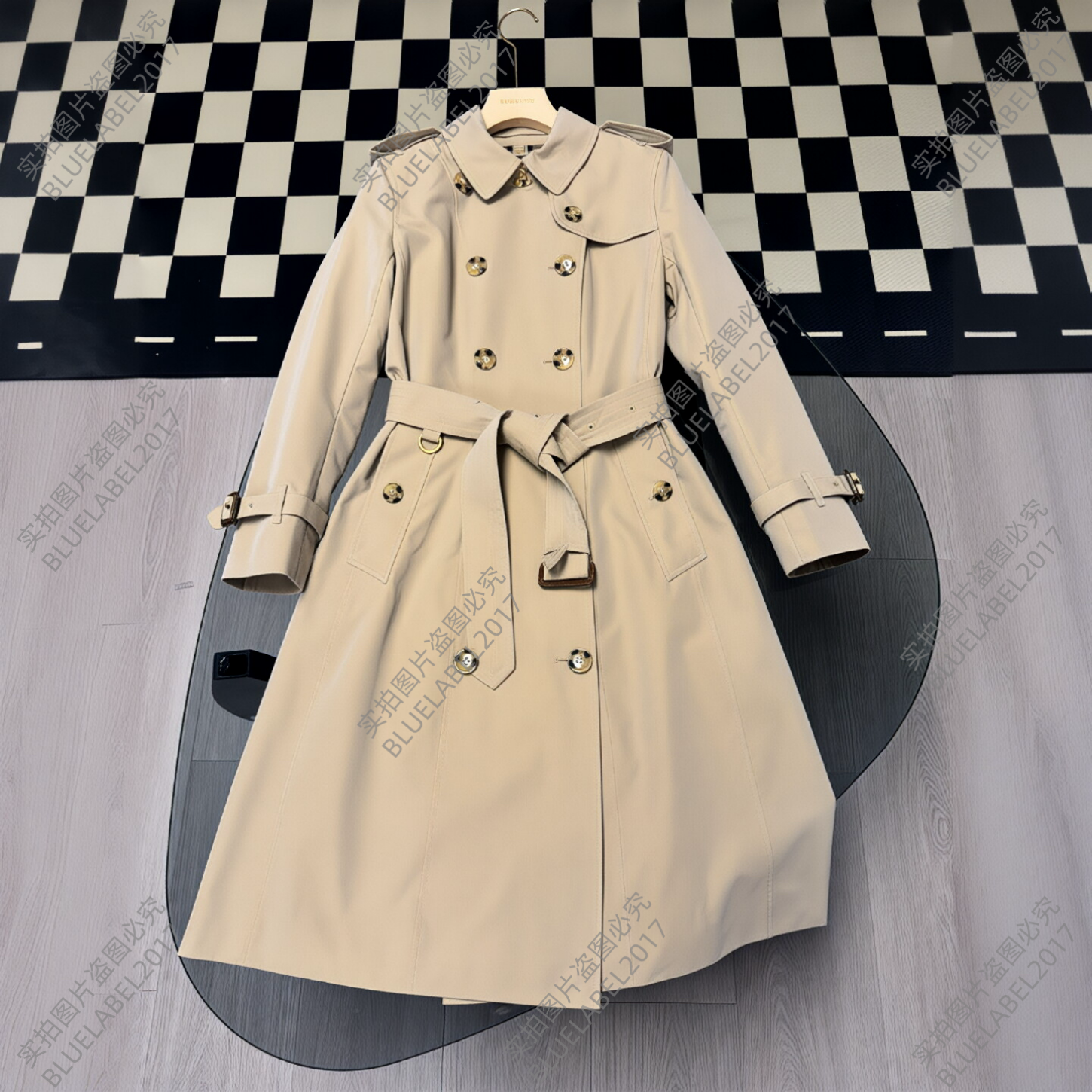 📚 新款经典修身版型切尔西中长款女士风衣双排扣嘎巴甸面料长款外套