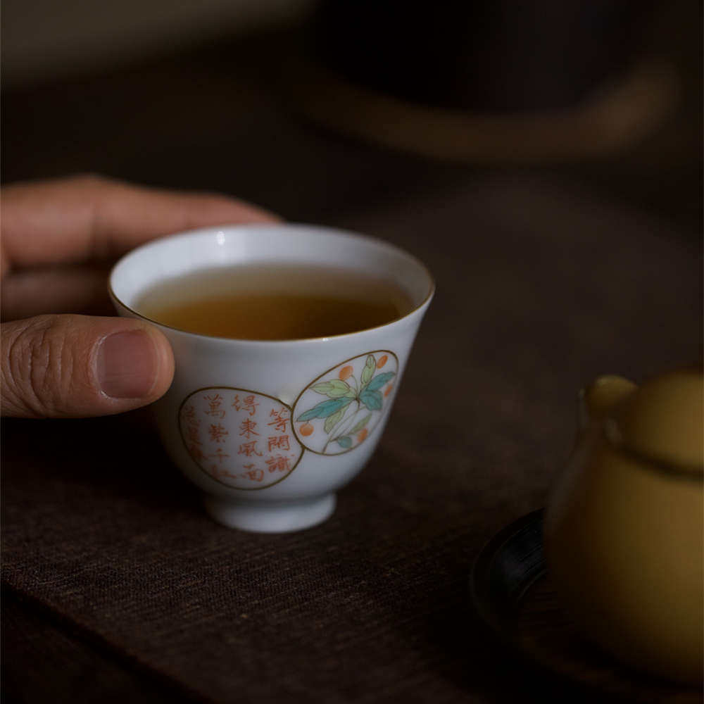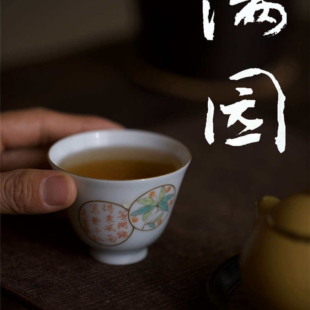 📚 限[满园] 粉彩园景诗文吾杯景德镇陶瓷手绘茶杯中式茶具弥云斋