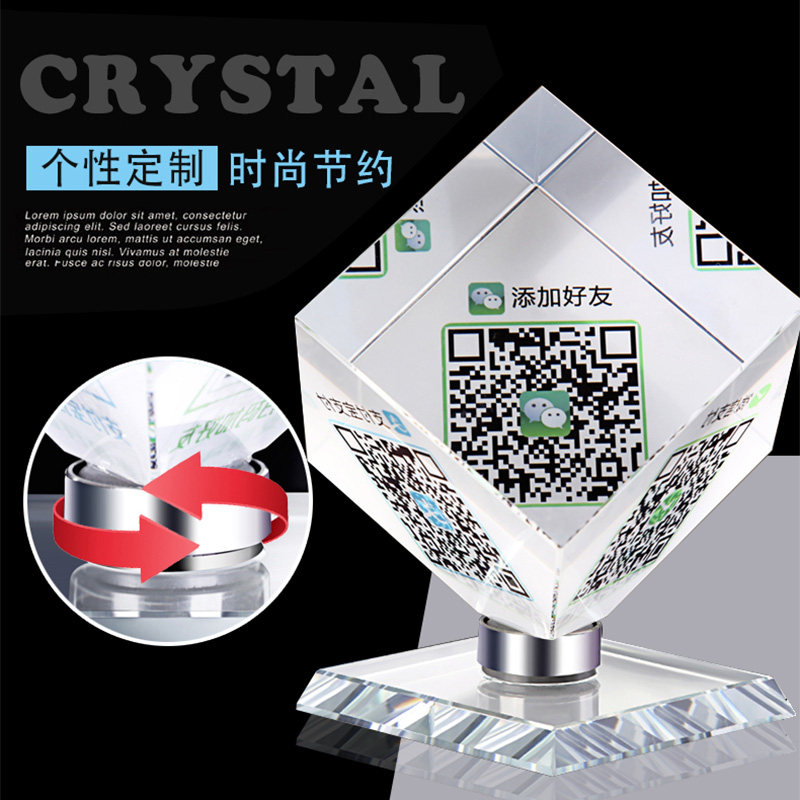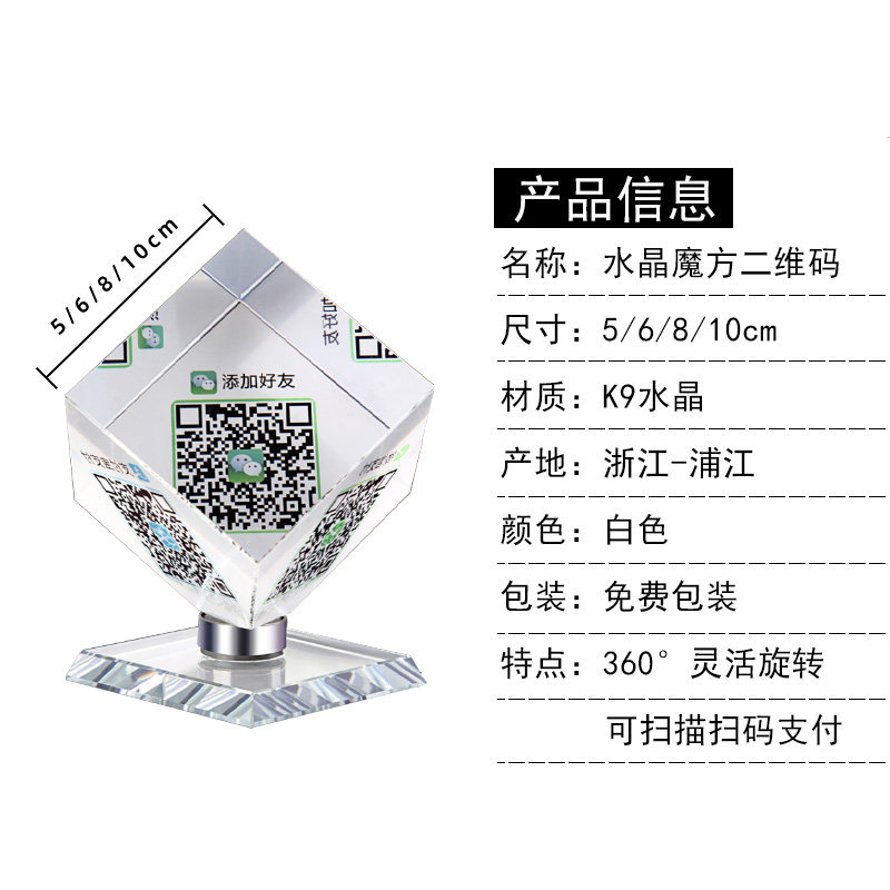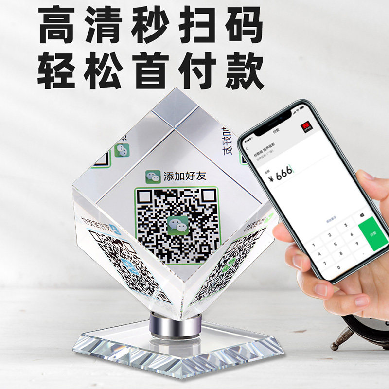 📚 个性定制二维码支付展示牌挂牌贴纸收钱牌音箱高档水晶旋转魔方摆台微信支付宝商家二维码收钱播报音器广告牌