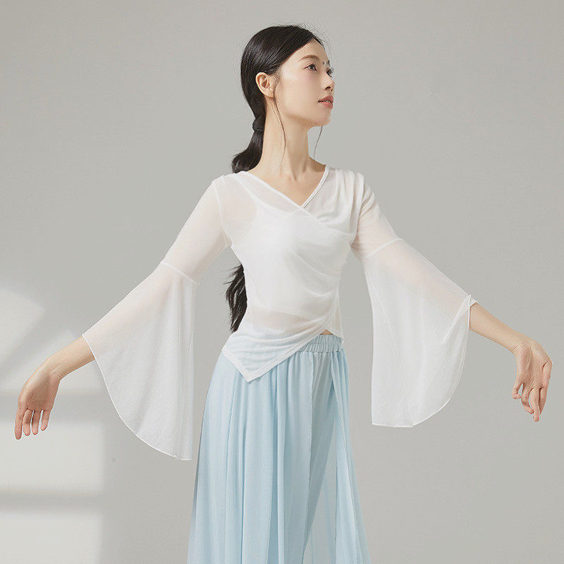 🌸 嘿,姐妹们!今天要给大家分享的是一件超美超仙的白色喇叭袖古典舞蹈服装!它就是我心中的“绝美中国舞古典舞蹈服装练功服演出服上衣女飘逸网纱衣”,券后价只需67元!