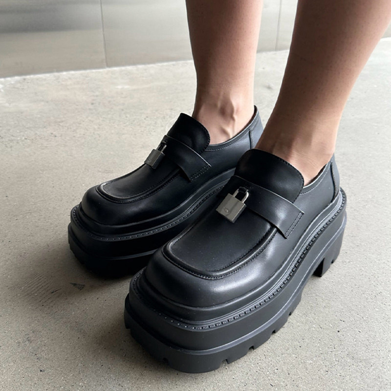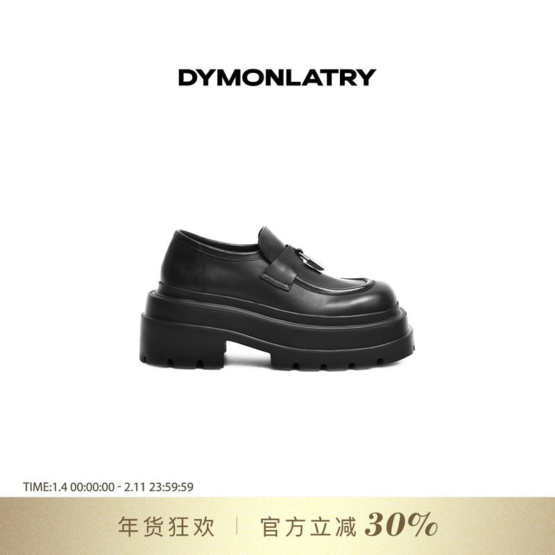 📚 DYMONLATRY 2025新款黑色厚底乐福鞋 锁头装饰厚底女鞋