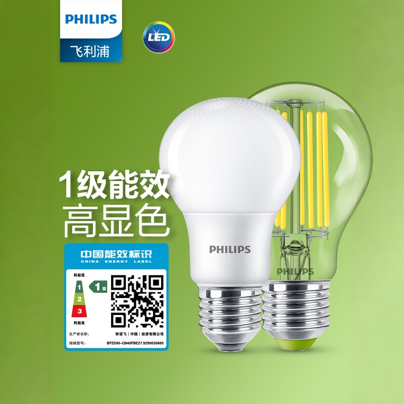 📚 飞利浦1级能效LED灯泡节能家用E27螺口螺纹超亮省电一级灯泡光源