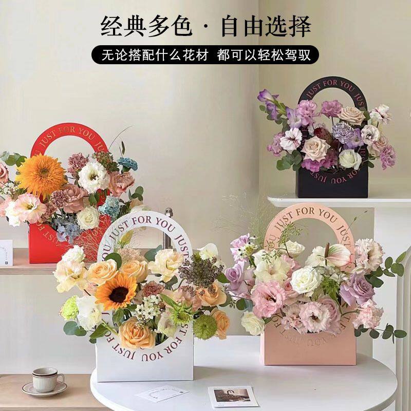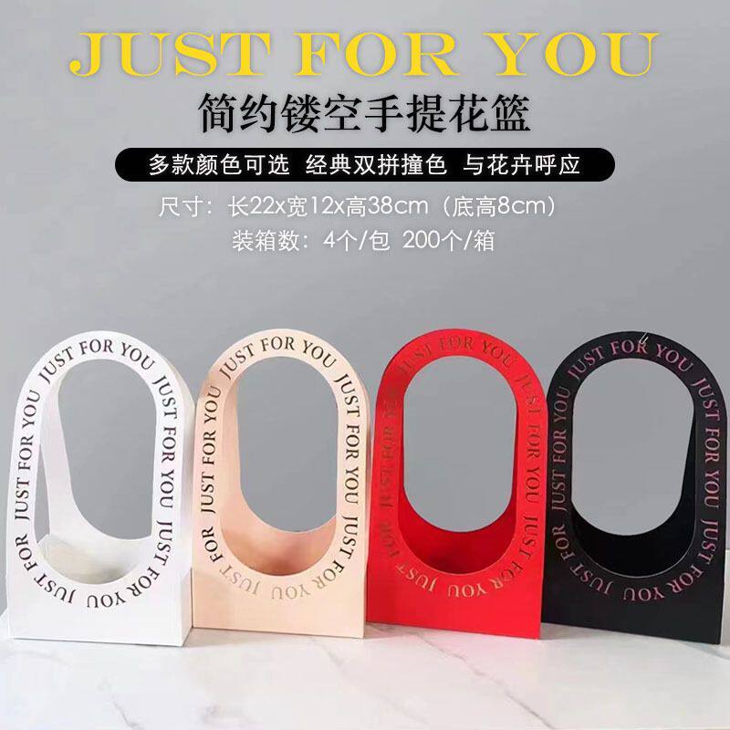 📚 简约镂空手提花篮纸质教师节鲜花花束花艺插花纸盒包装盒