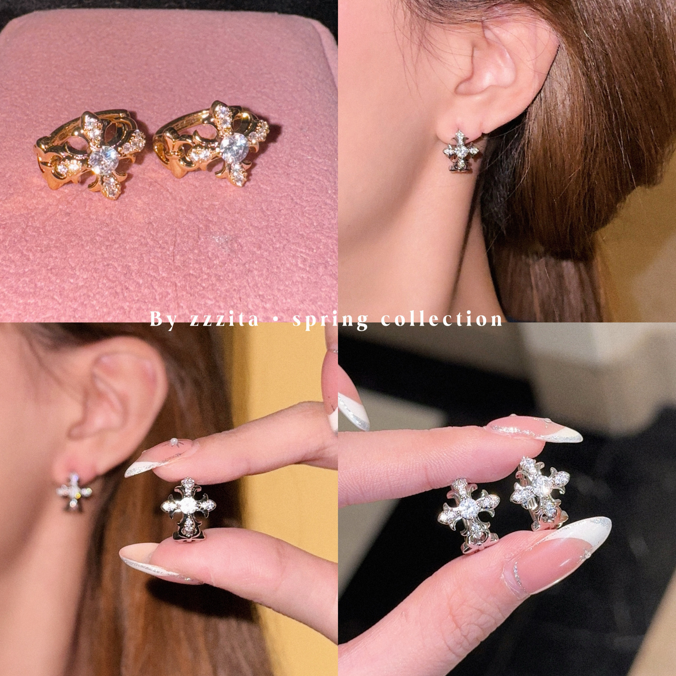 📚 ZZZITA 荆棘之花~美式闪钻十字架鸢尾花耳环设计感百搭简约耳环