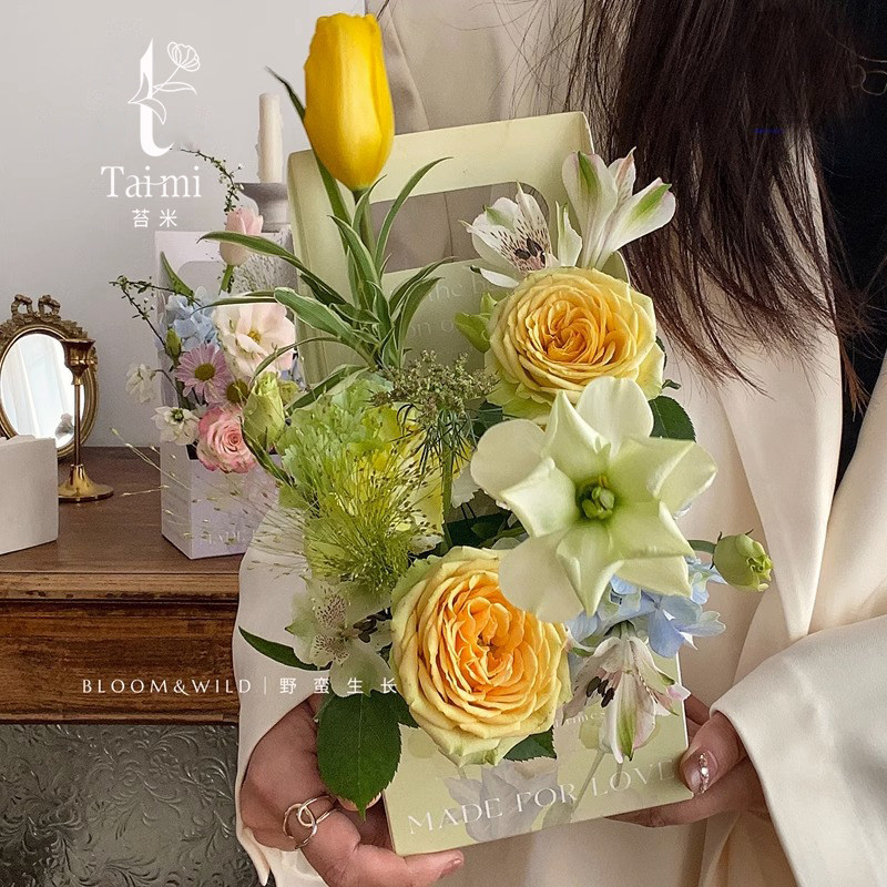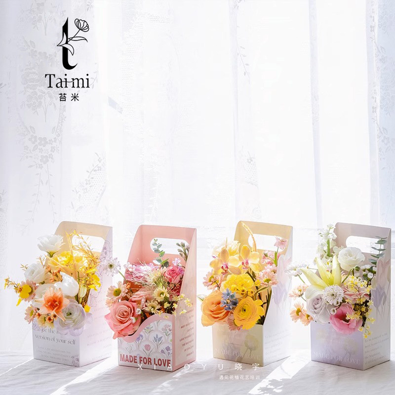 📚 苔米教师节春日柔情手提盒花盒礼盒花艺花店插花盒鲜花包装材料