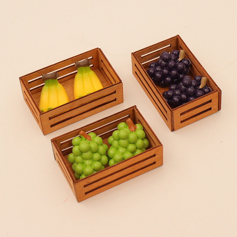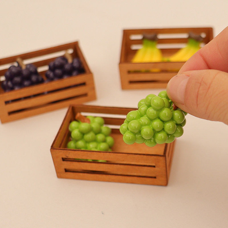 📚 微缩迷你葡萄香蕉水果框木框娃娃屋小摆件超市过家家玩具模型配件
