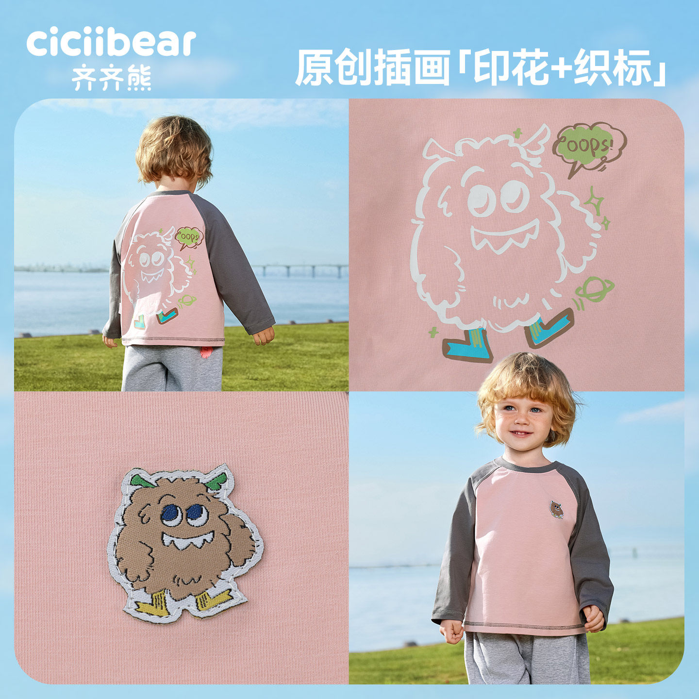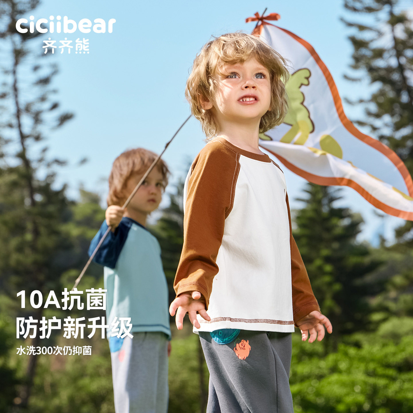 📚 [10A抗菌]齐齐熊宝宝t恤长袖春秋款男童插肩儿童圆领2026新款上衣