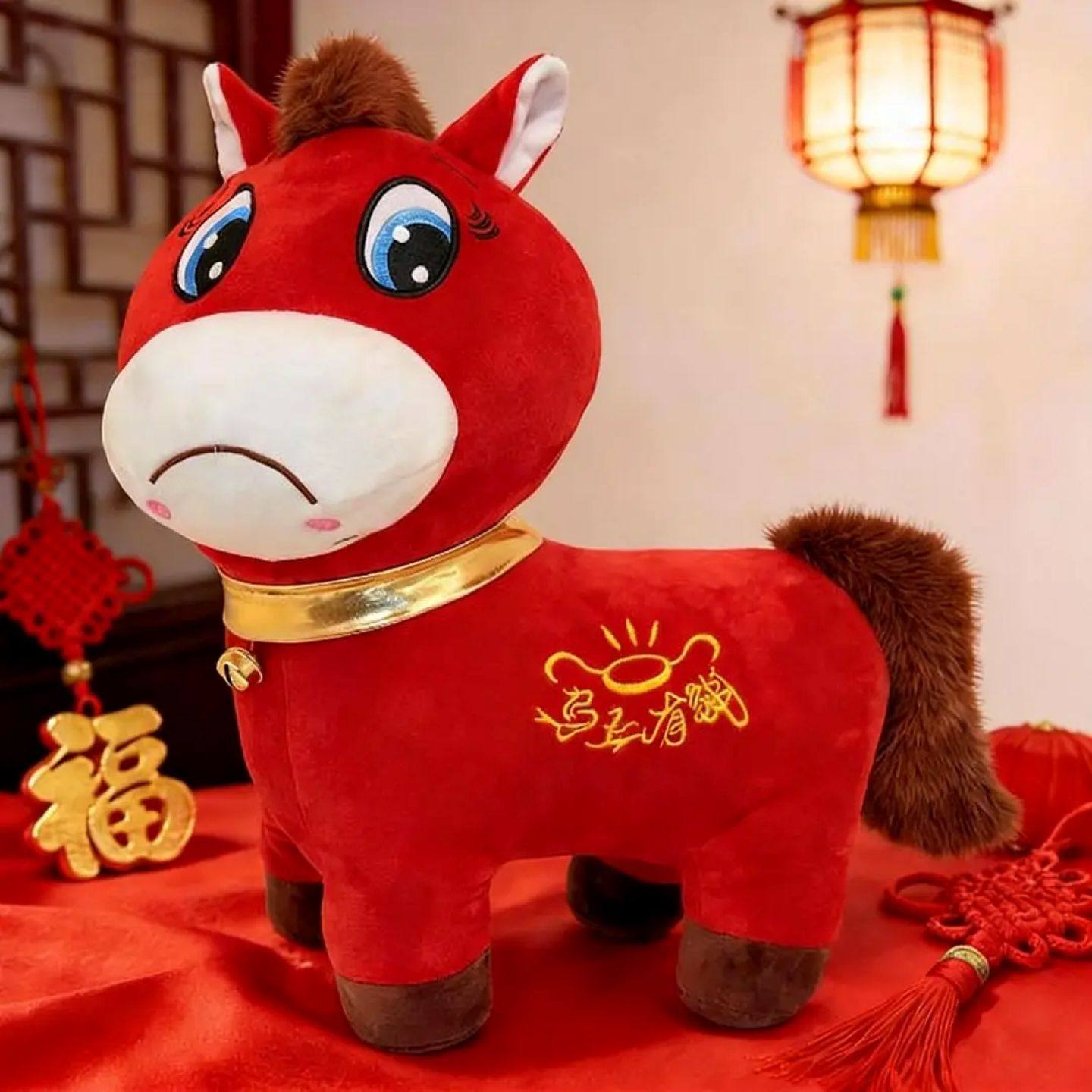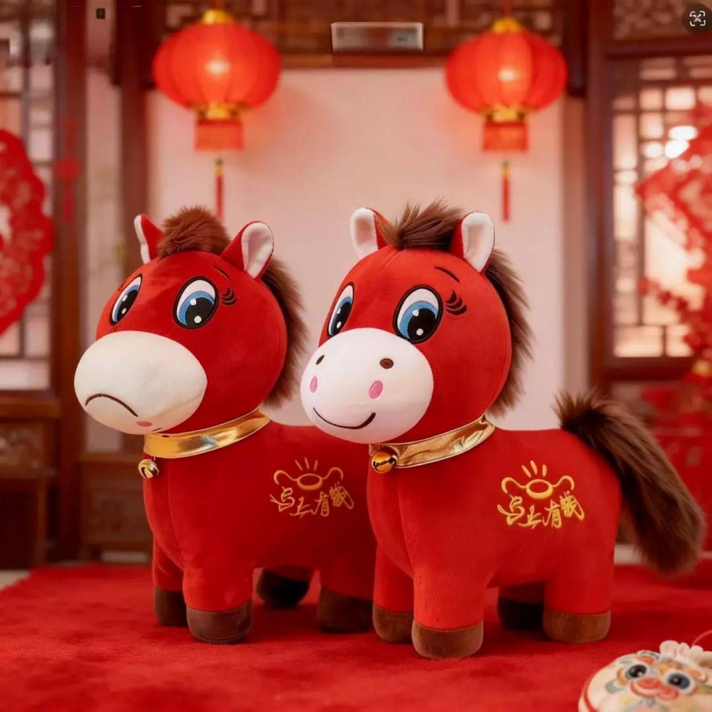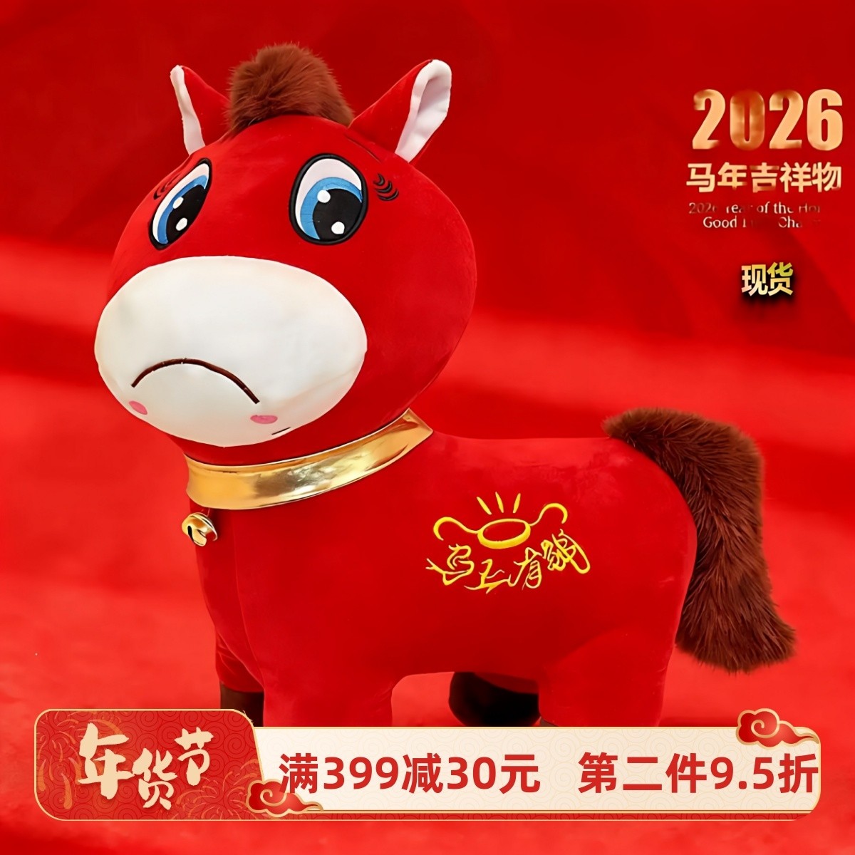 📚 哭哭马现货可爱小红马新年创意马年抱枕玩偶沙发春节装饰新年