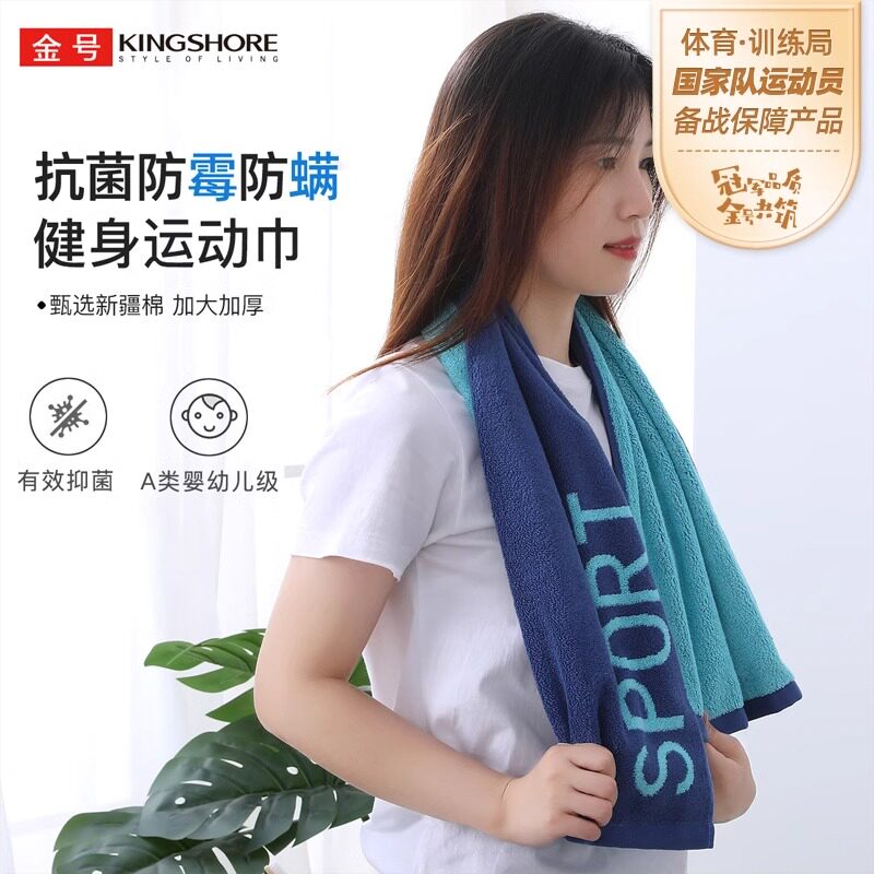 📚 金号运动长毛巾纯棉a类吸汗擦汗速干健身跑步网球女士羽毛球篮球