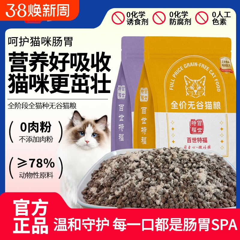 📚 全价鲜肉猫粮幼猫成猫无谷益生菌冻干猫主粮宠物鸡肉夹心鸭肉百世