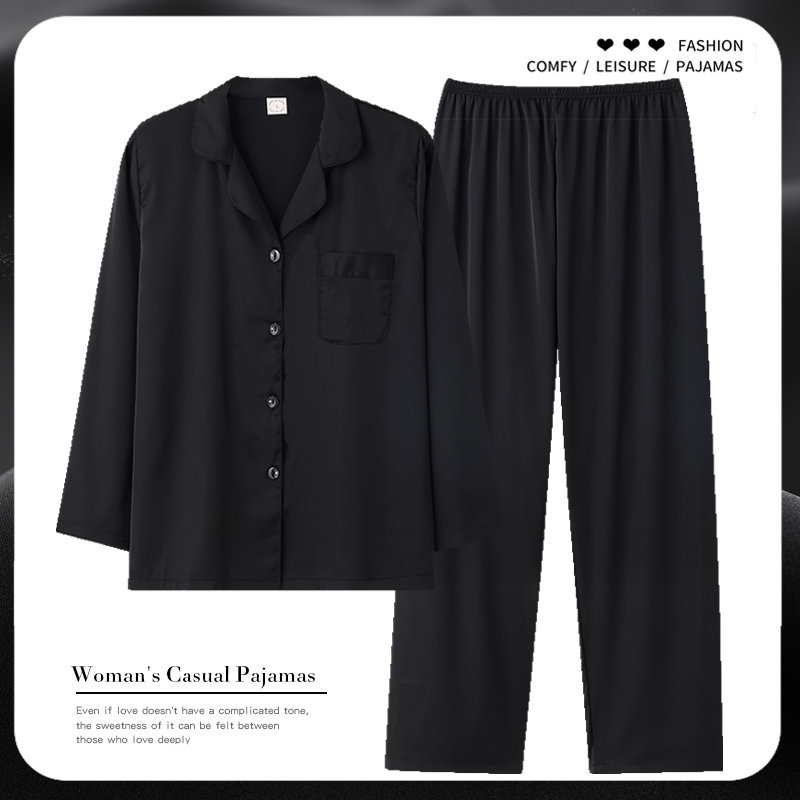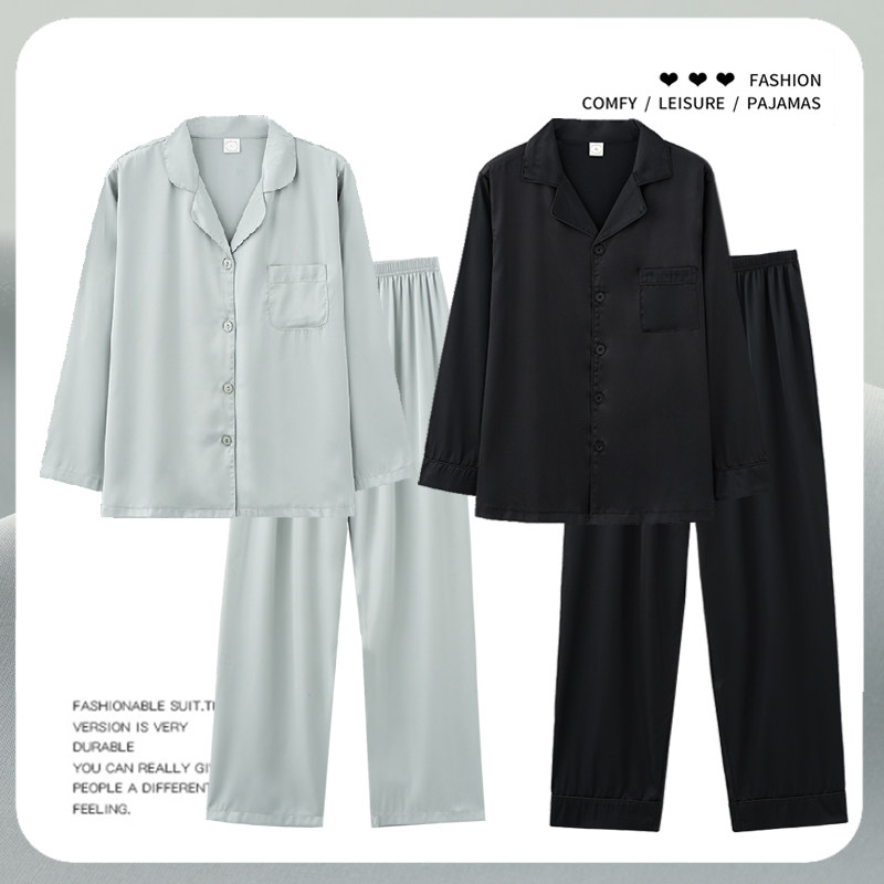 📚 芝桃鸟春秋季冰丝睡衣情侣黑色男仿真丝绸香槟女款家居服套装秋款